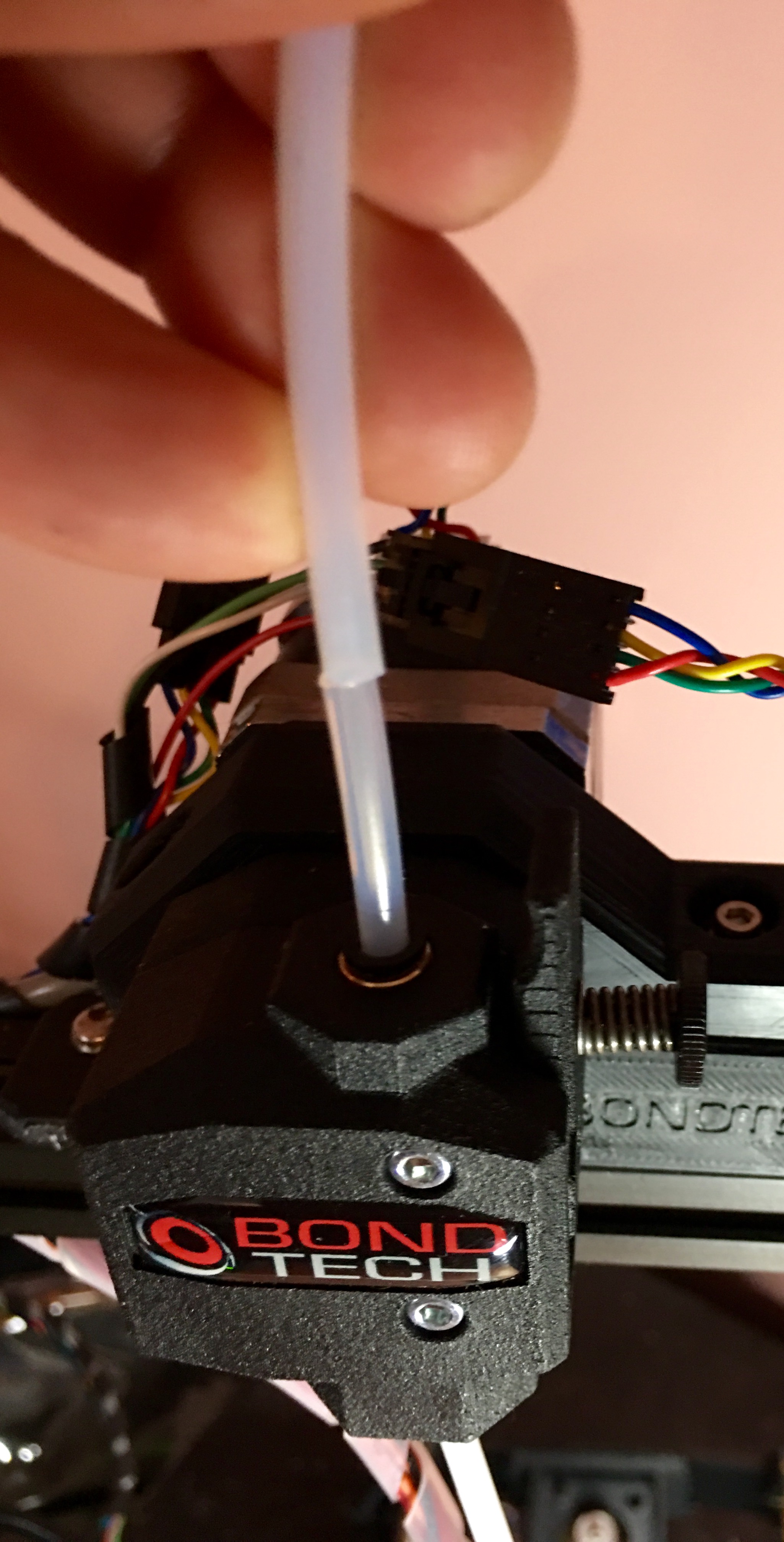 1. it's easy to feed the filament in, you push it through the long tube from the spool to the end where you can grab it to push through the extruder and Bowden.