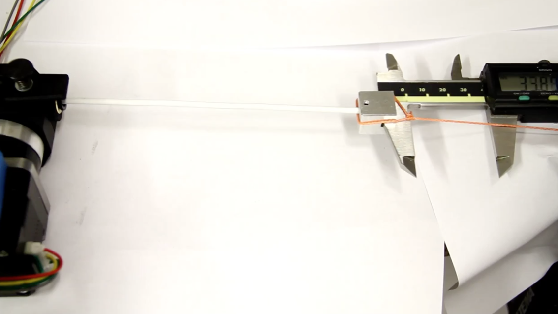 Martin rigged up a cool fixture and shot a video he shared with me to test the calibration and reproducibility. Here is a screenshot of the fixture. The cord is hooked to counterweight so the filament goes both ways. This is neat because it removes all human measurement error and it puts a little tension on the filament to keep it straight.