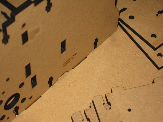 My parts are cut from 6mm un-laminated MDF, I've sealed the pieces and started a first dry fit, the slots cut in are 7mm giving me a 1mm gap all round the slot.