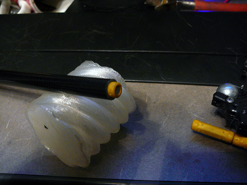 How about these jb welded to the end of a carbon fiber rod with ball bearings in the carriage?