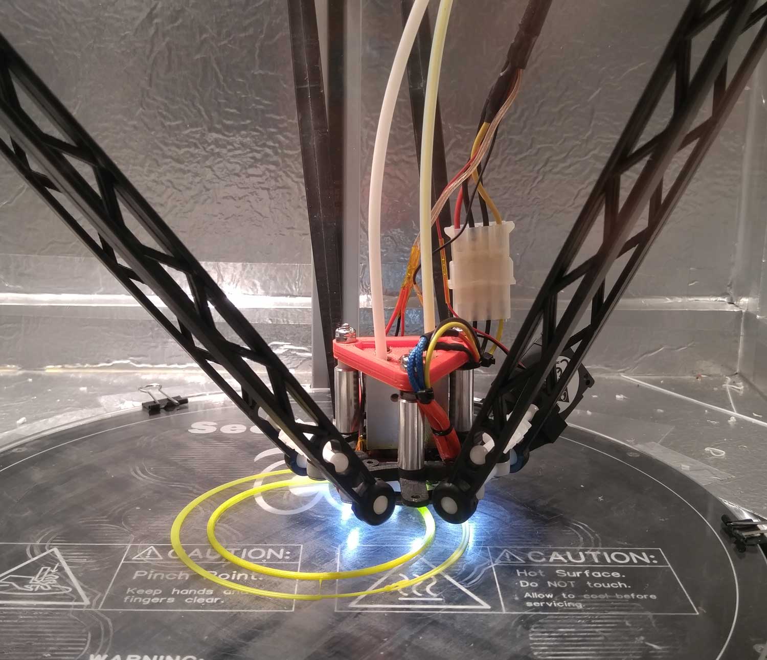 This allowed for an easy switch from a single E3D Volcano head, pictured below, to the Cyclops now in use and pictured in previous posts. Keeping in mind that the Cyclops, like any single extruder head, also has only one thermistor and heater.