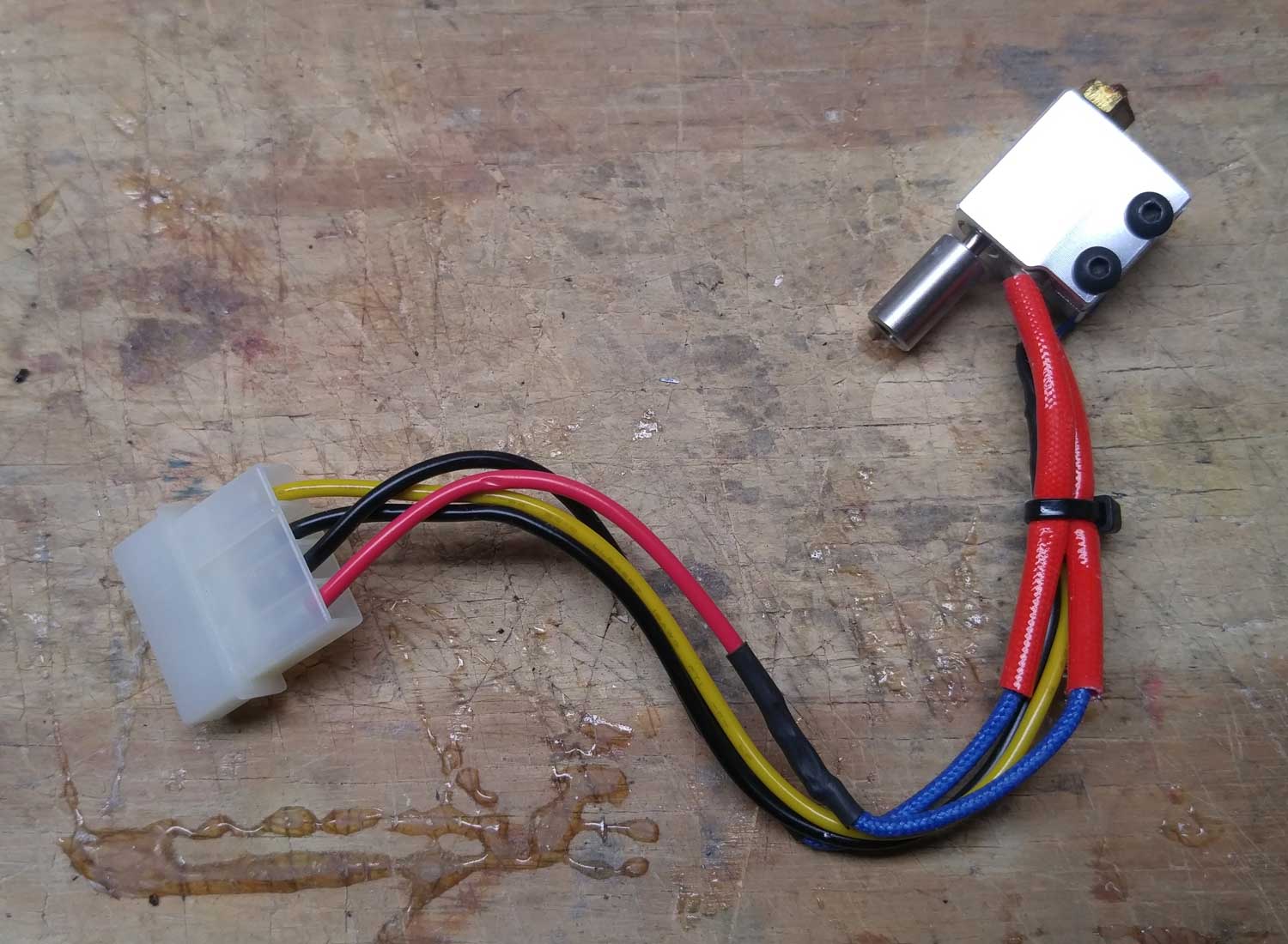 Went with a PC Molex connector to connect print head heater and thermistor to printer.