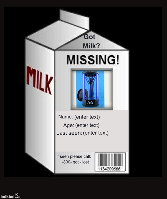 Is there any "Official" updates on the Eris? I have a new bookcase at work, and the top is reserved for a 3d printer.