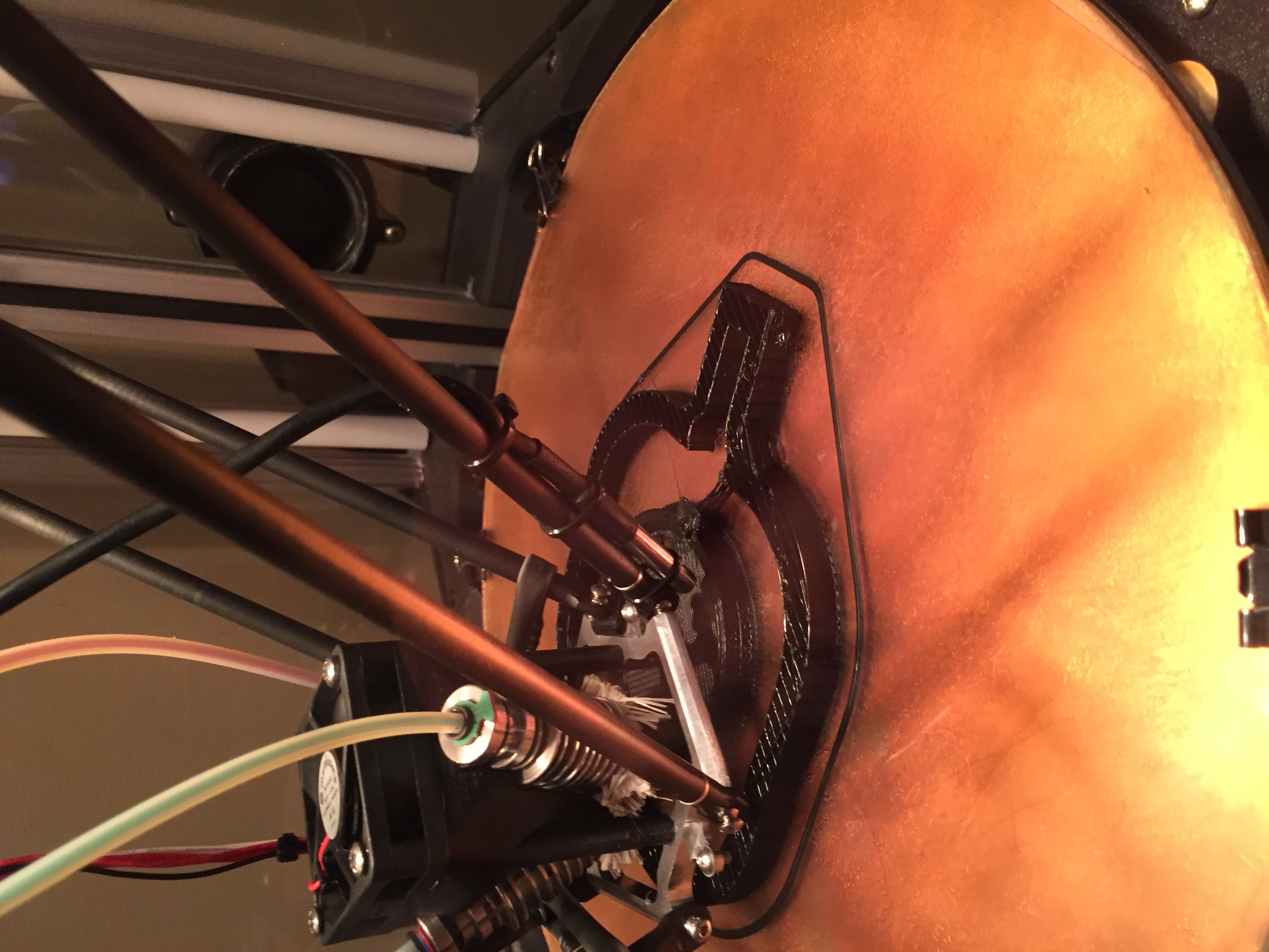 Here it is as it sits on the print bed. Still a bit of stringing despite retractions set at 8mm.