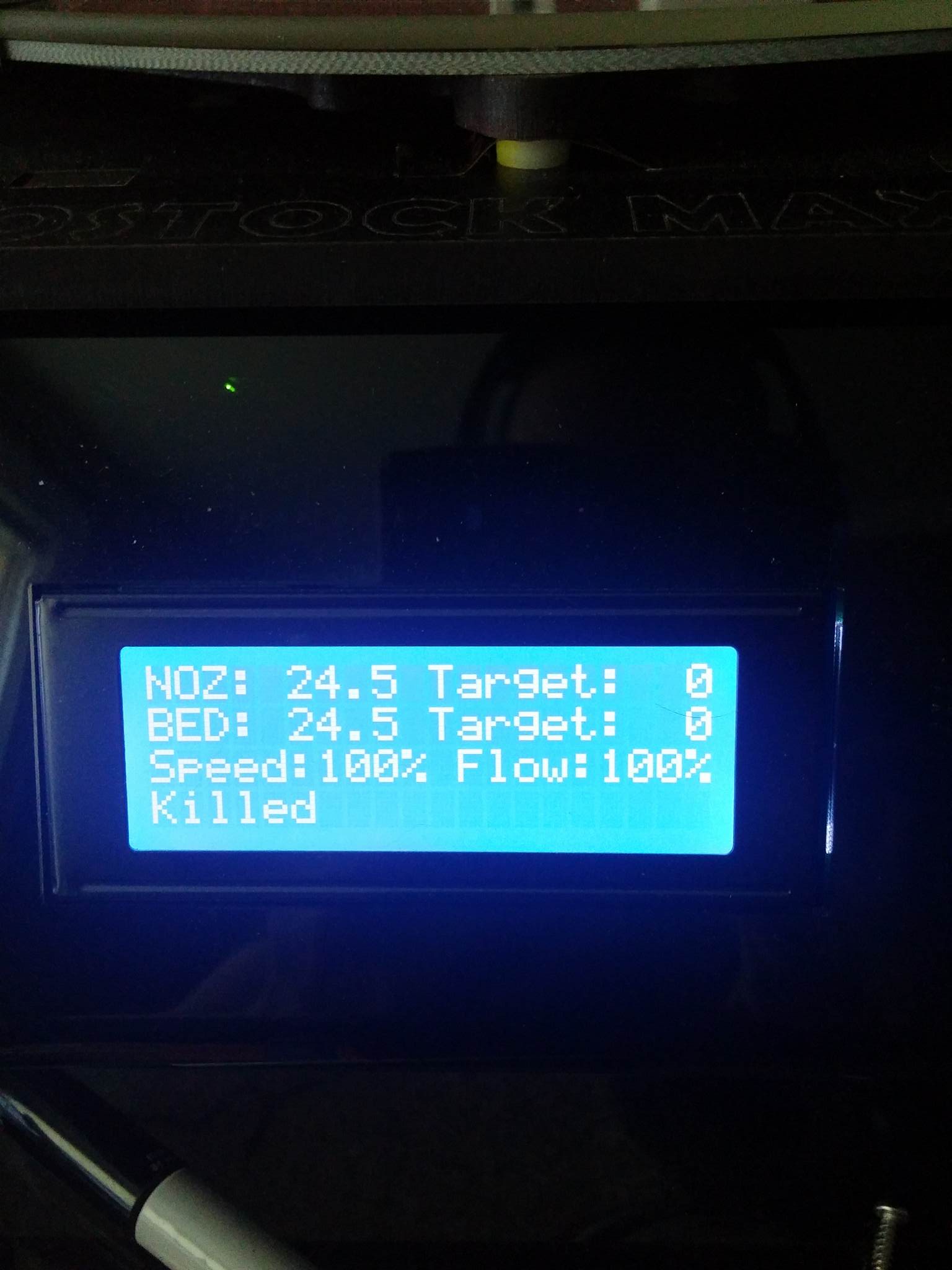 Rostock Max V2, Duet Wifi, IR Probe, PanelDue 7" LCD, Heated Enclosure, Firestop cans, Thermally Fused 12v E3D V6, Berd Air, Floating Thermally fused 24v Bed, Aluminum heat spreader, PEI, Dual 12v PSUs in series.