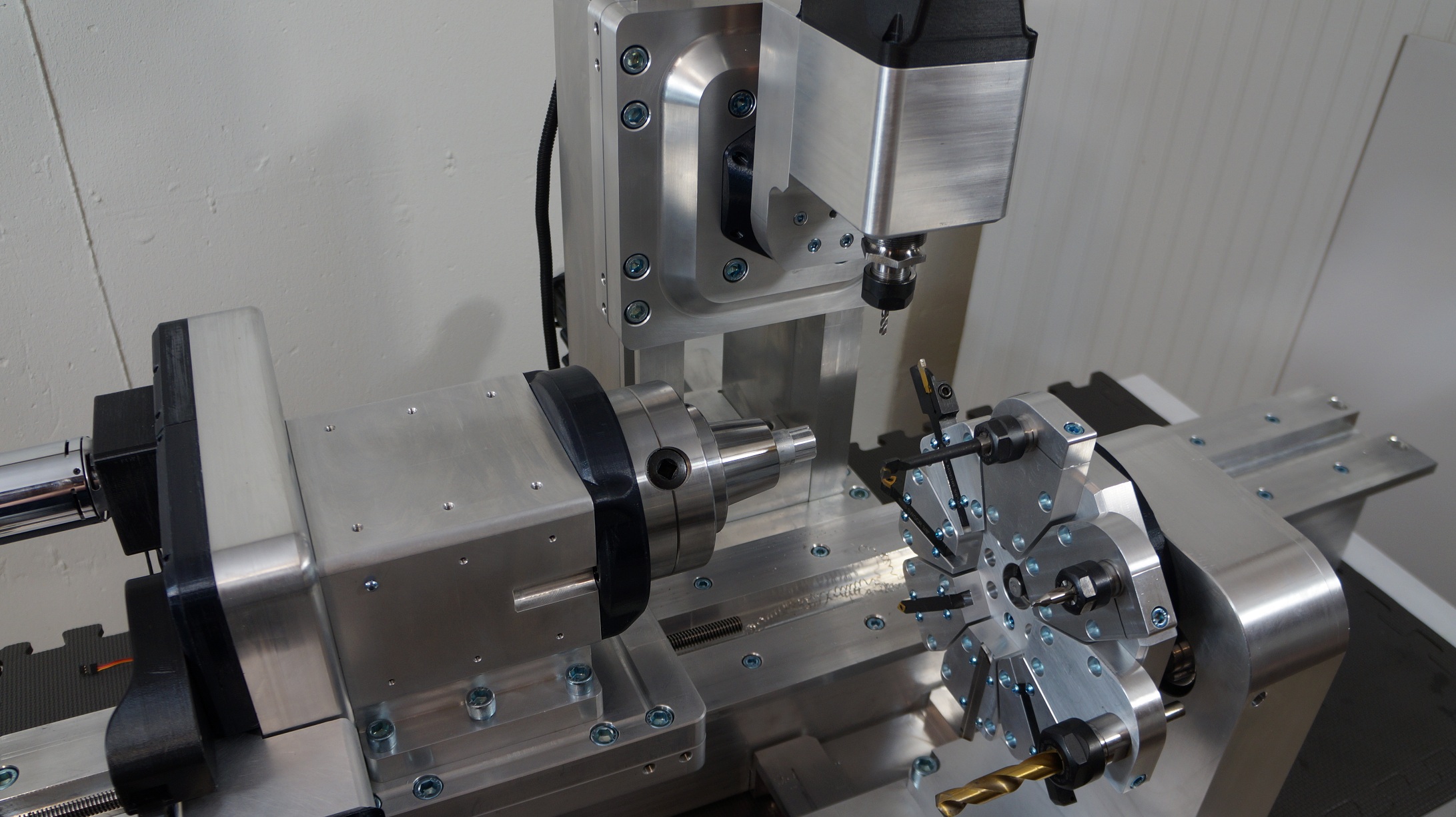 Currently this project is in a sort of publicity-limbo. I want to launch a Kickstarter for this mill-turn center with the goal of starting a U.S based manufacturing company to make cool CNC machine/robotics/3d printing that fill in the gap between full sized industrial machines and cheap imported junk like those little T slot router kits. I think this is an under-served market with a lot of ignored potential, as there are plenty of Makers who can't get what they want right now.