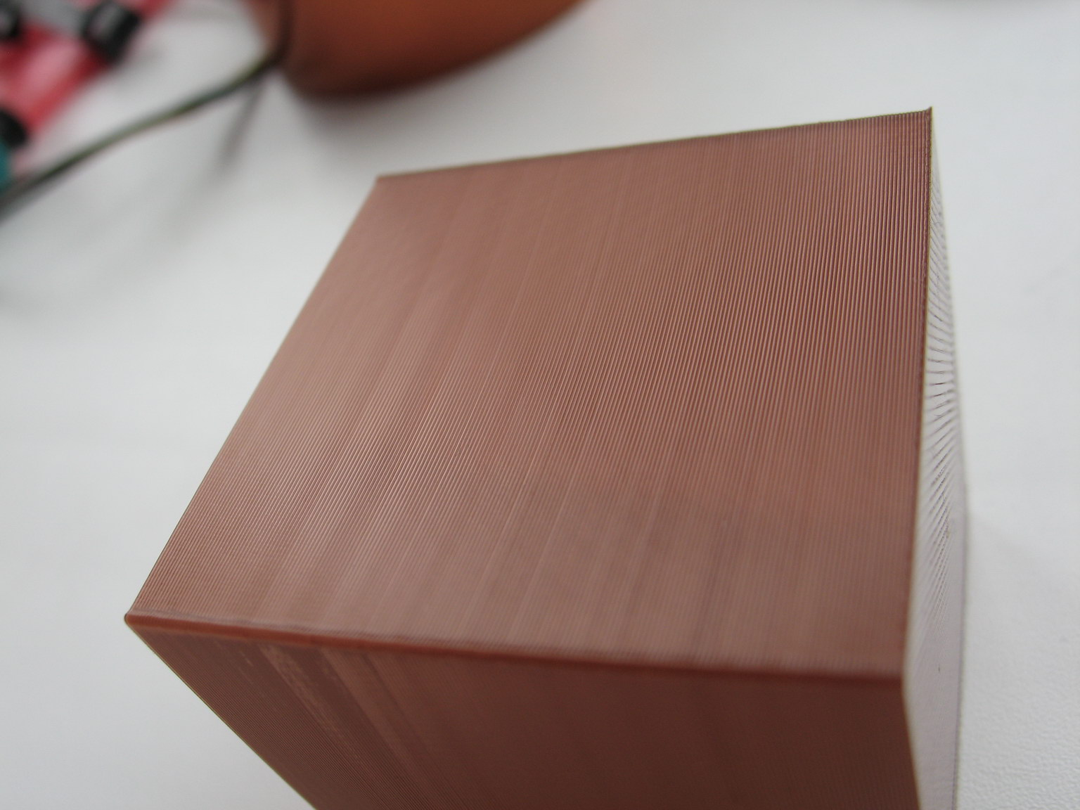 DaveBot wrote:A question: have any of you tested printing with 1 perimeter and zero infill? My Rostock was banding about average vs what's been shown here, but then I happened to print a 1 perimeter calibration brick w/o infill (I was checking over/under extrusion vs layer height), and lo and behold it was as smooth as the proverbial baby's bottom, with all other settings the same as before!