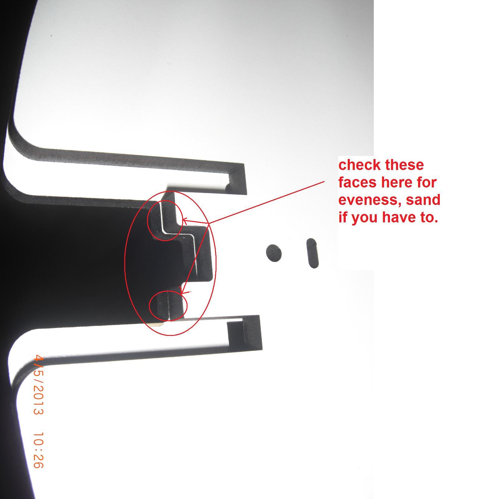 I thought I'd share this with everyone since there has been some confusion on how much gap to have between the extrusion and the frame. I am in the process of reassembly and I might as well show you how i did it. Following procedures assume you have checked your laser cut parts and all are aligned properly.