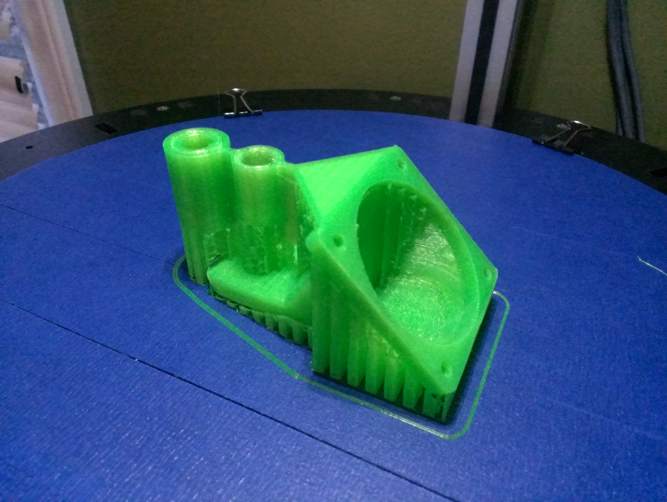 I also had a 40mm fan laying around so I decided to make MSURunner's fan shroud and a fan adapter plate. This was my first print using supports for overhangs, so hopefully my setting were all right. All I know is it looks really cool, but is going to be some work cleaning it up.