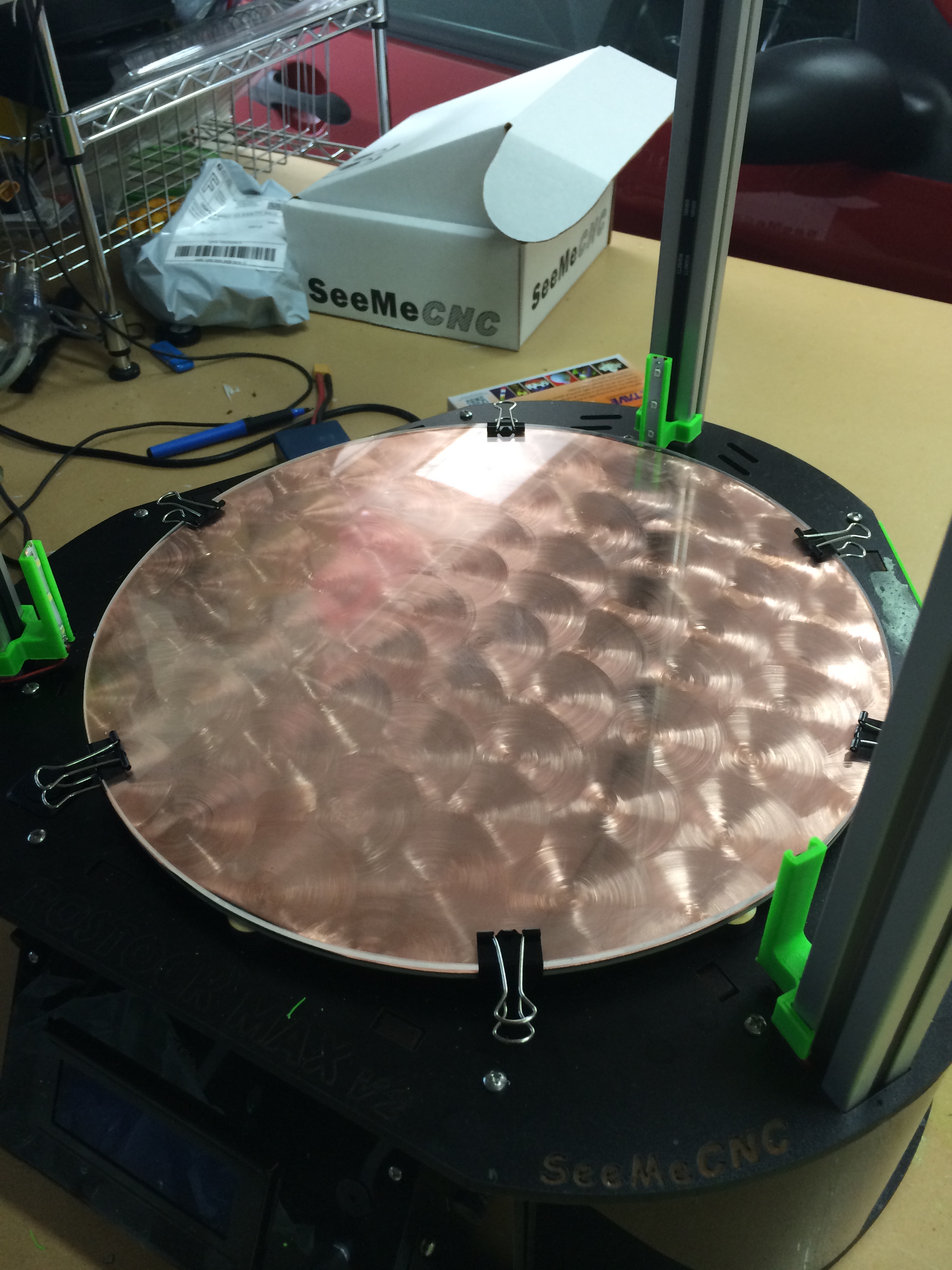 I ordered the copper plate from amazon, cut it down and machine turned it to make it look better ( it was quite scratched right out of the box ). It was really easy to re calibrate, just a matter of adjusting the z height and rechecking each tower but none of the tower end stops needed adjusting as the entire bed came up the same amount. I haven't really printed anything large yet to check its effects on warping, but i can tell you that now with an IR temp probe I am measuring roughly a 2 degree C difference from center to the outside edge. A huge improvement over stock which could vary up to 20 degrees C.