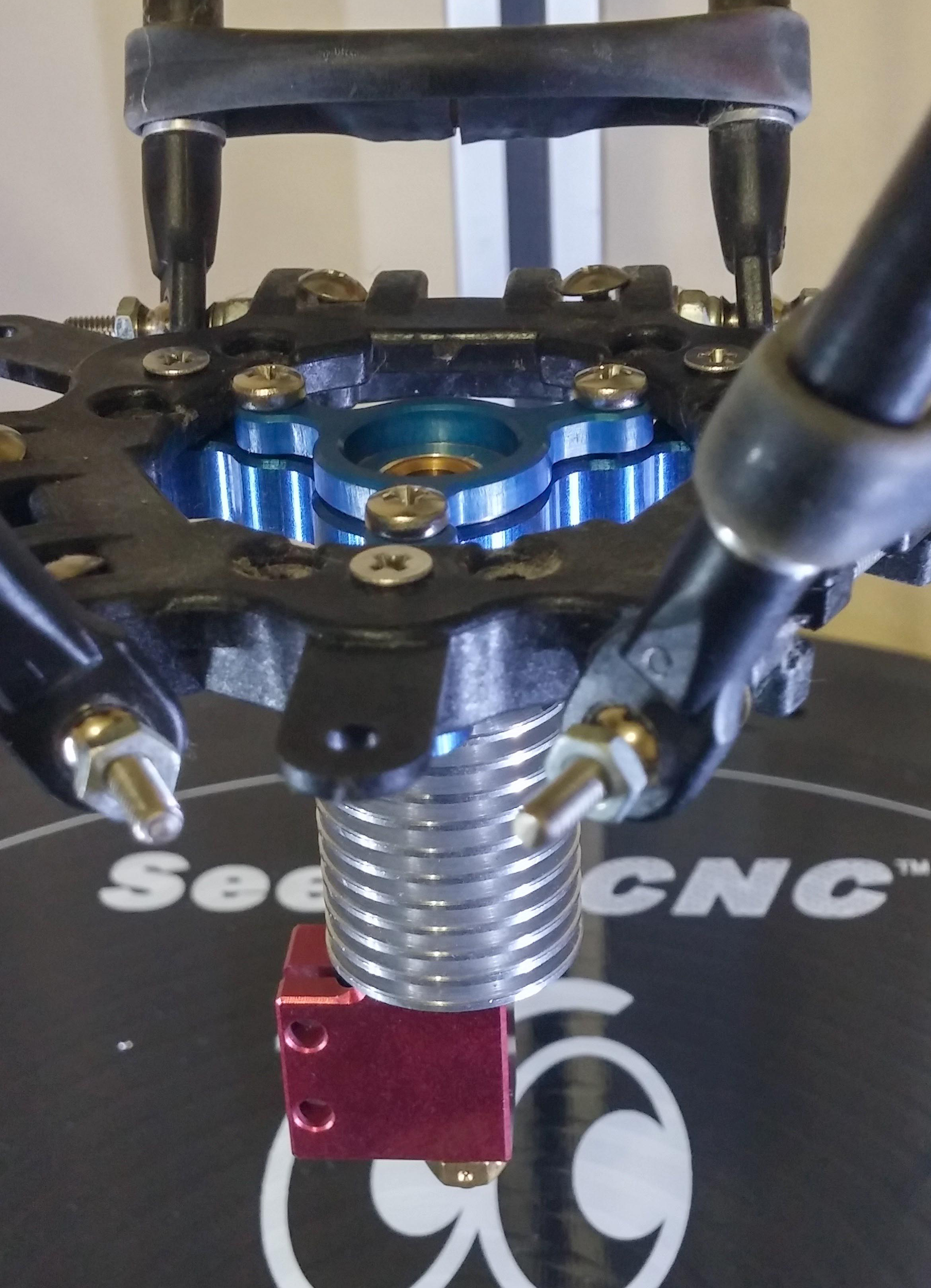 Yes both end of the stand offs are threaded for the included M3 screws. You can do as you say and leave the spacers mounted to the effector plate or you can remove the bottom set and the whole unit, spacers, mount and hotend will come off with just three screws. No more long bolts and nuts. I will try post a few more pictures tonight to try and show it better for others and I will get the early release link out to you shortly. Working a small website format issue and my Code Monkey just got home from NASA! I will also be adding the lock ring pictured here in 6061 for sale.geneb wrote:Yes. The J-Heads I use are _real_ J-Heads made by Brian Reifsynder of hotends.com. They don't have a built-in bowden fitting.