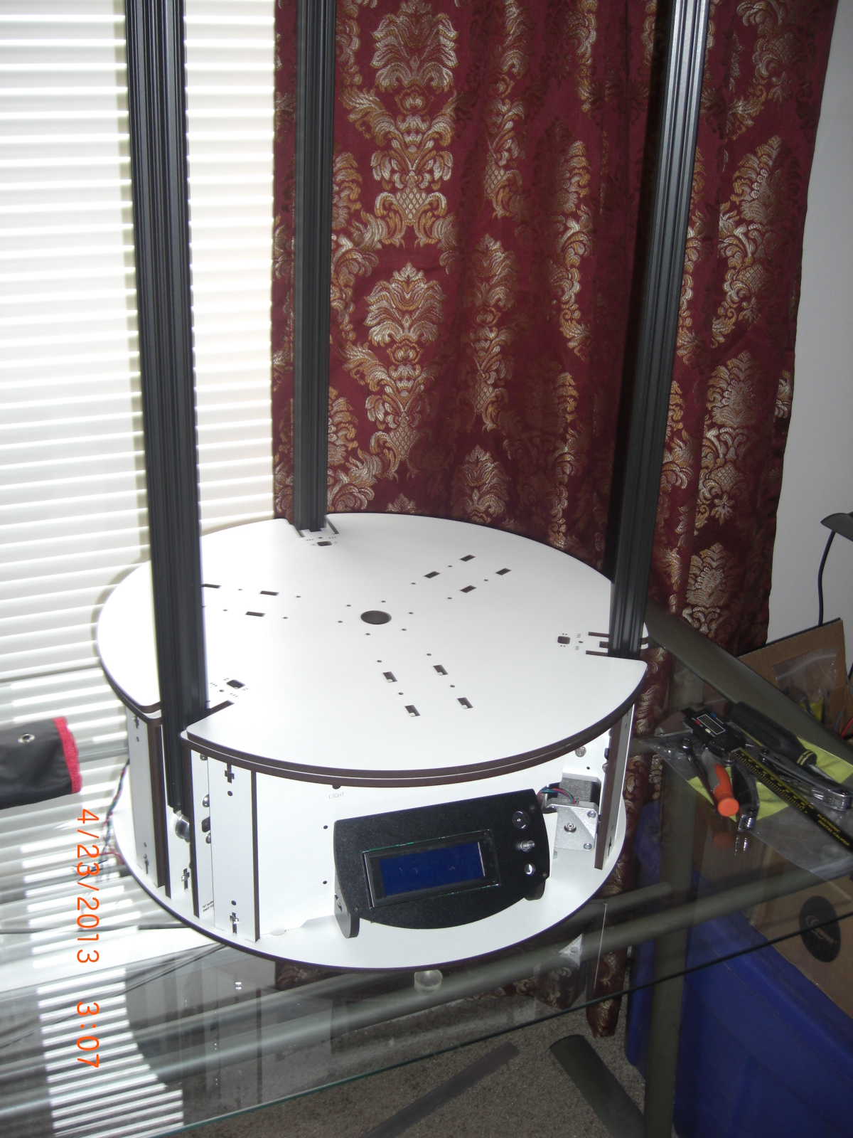 the adjustable bed idea was removed long ago, Once i got my rostock base flat and level, I didn't need it. It's just mounted with stand offs. I've been pretty satisfied with just the onyx and boro. stays flat. downside is that it doesn't heat evenly, hence the project im doing above. hopefully the mic6 will stay flat and the beefier 24v heat bed will heat it to sufficient temps.