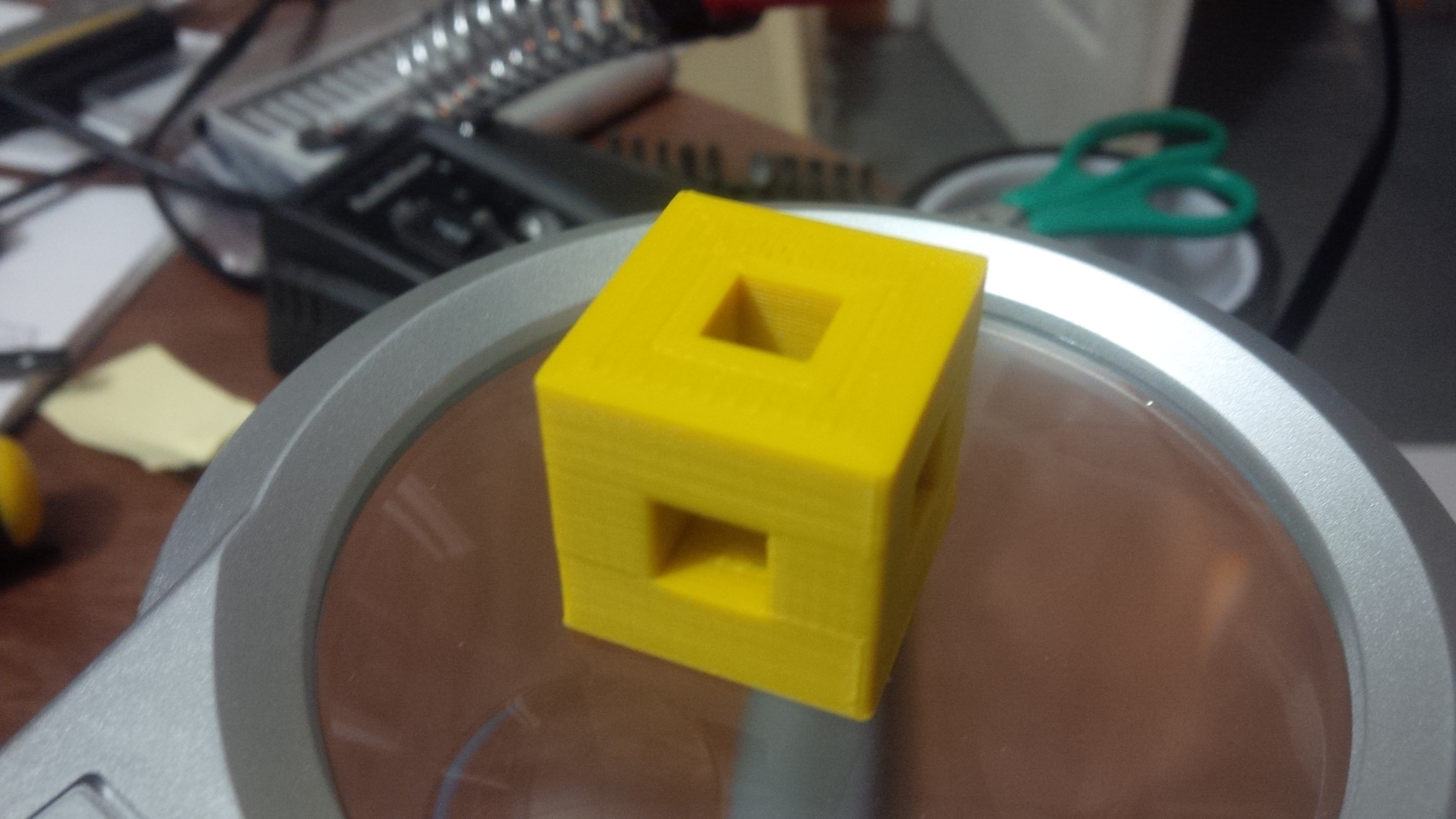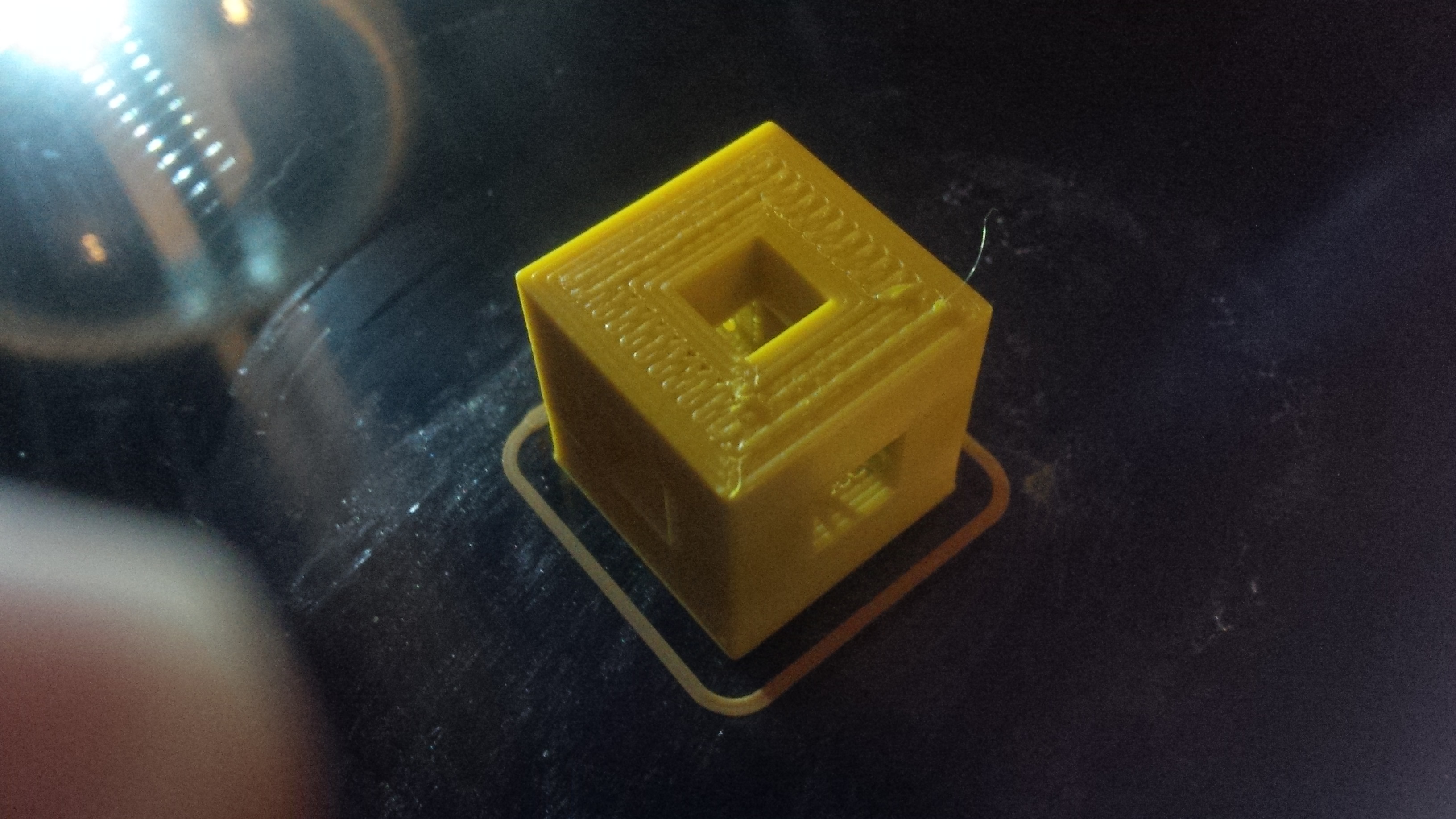 Well, it's not like I have tons to compare to, however I think my first print ever came out pretty good. The only part where there was was mess up was when it was done printing the 4 little towers and started the soli top part, between the gaps in the few spots the plastic fell a little. Other than that It went good I think, it was great to watch in real life rather than online! I'm hooked! Lol! This was the calibration cube in the manual with seemecnc yellow ABS, Hot end at 220 and bed at 80.