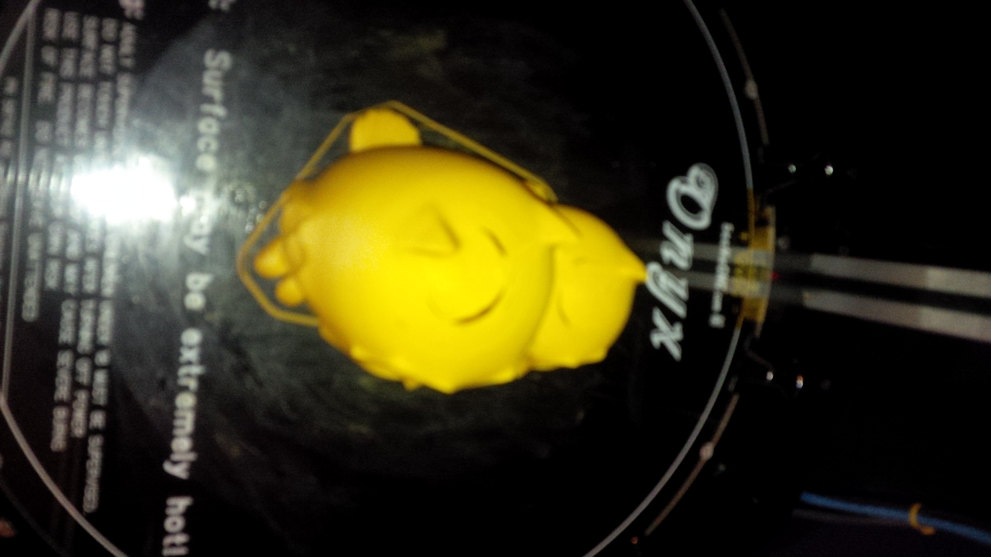 After soaking for the night and a few hours with some tiny pick tools and a very small drill bit powered by hand I got the hot end free from the clog! Back to printing I went. I printed out a stretchlet, it came out alright but not the best. The layers around the outside are very thick and choppy, I dont know if its because of the .stl file I began with or the way it was sliced but it did not have nice fine layers like my test cube did. I dont know, here are some pics: