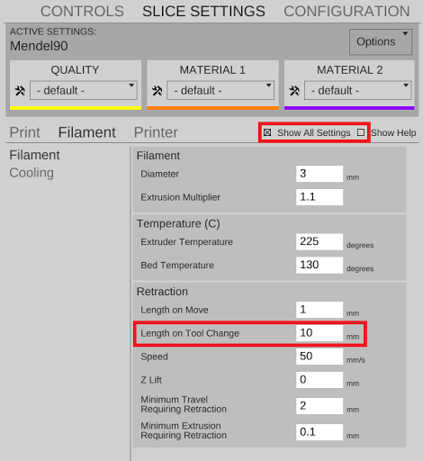 I'm using MC 1.5.0, build 1.5.0.6404 on Linux. (The latest.) I have Extruder Count set to 2, and I have an object loaded with one mesh on one extruder and another mesh on the other. The slicer seems to understand that there are two extruders. However, unlike the screenshot, there is only one MATERIAL dropdown. I can't tell it which material to use in the second extruder!