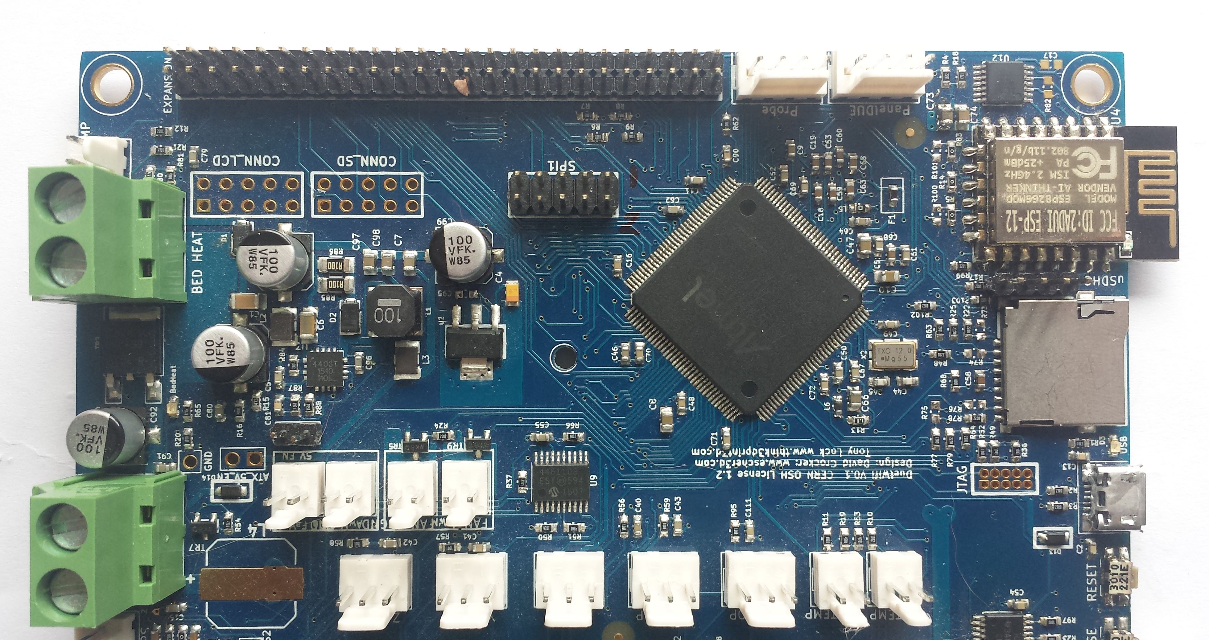 I'd be happy to use USB, or an SD card, but the current board laybout has them demoted to microUSB and MicroSD connectors, which are a lot harder to access, and are more prone to damage. Their location on the edge of the board where the unfortunate WiFi antenna protrudes means I will have to have a gaping maw in the side of my printer to access them. MicroUSB cards are a poor choice for portable storage as well, since they are excessively small for moving around.