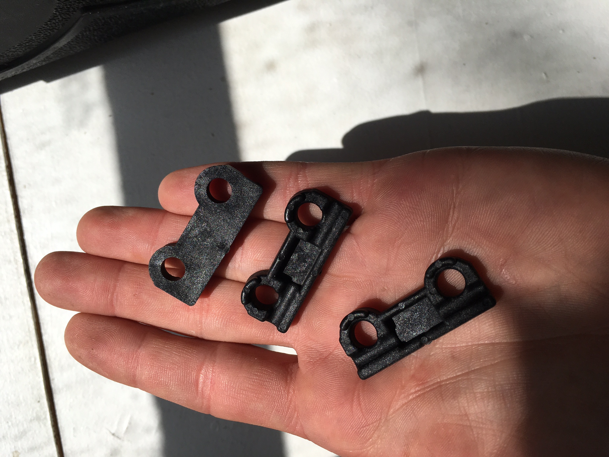 Those would be axle adapters for the injection molded carriages, so that they can be used with U-joints rather than ball joints. You can safely ignore them.