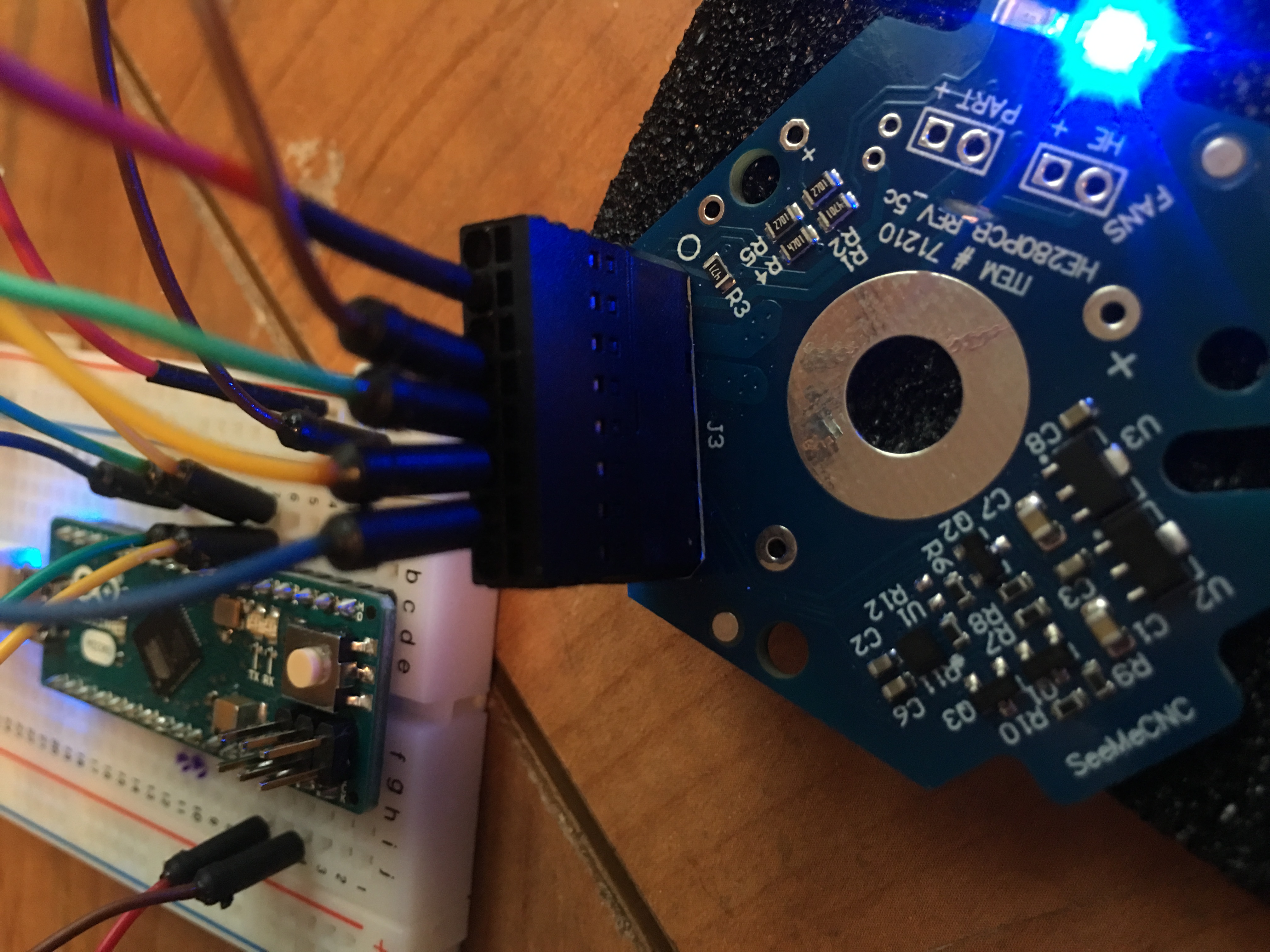 Well, SeeMeCNC was gracious enough to send me another PCB to keep working on this project. It arrived today. So this time, I very carefully set everything up, verified voltage output from my Buck convertor (9V), powering both the Arduino Micro and PCB. Verified all the hook ups between the 2 boards. Verified the sketch is installed and functioning before hooking up the PCB. Then I hook up the PCB and power on and the sketch hangs in the same function call as before.
