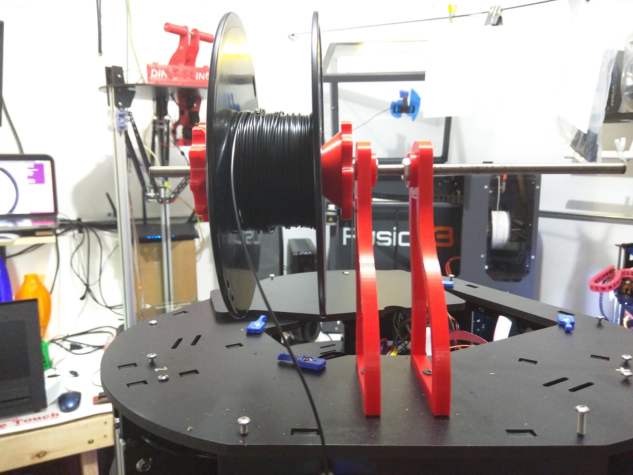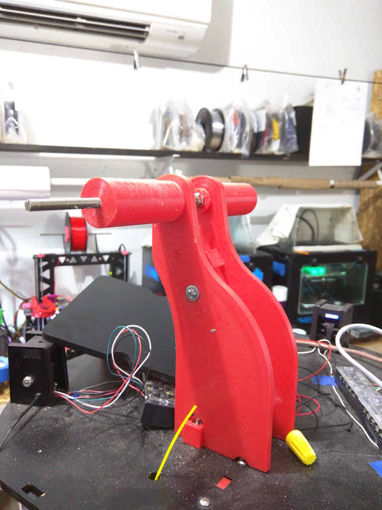 The Red piece is our spool holder on the V2 which worked better just from being a circle vs square design that (V2) spool holder mount easily holds the M8 rod for a "frictionless" spool holder.