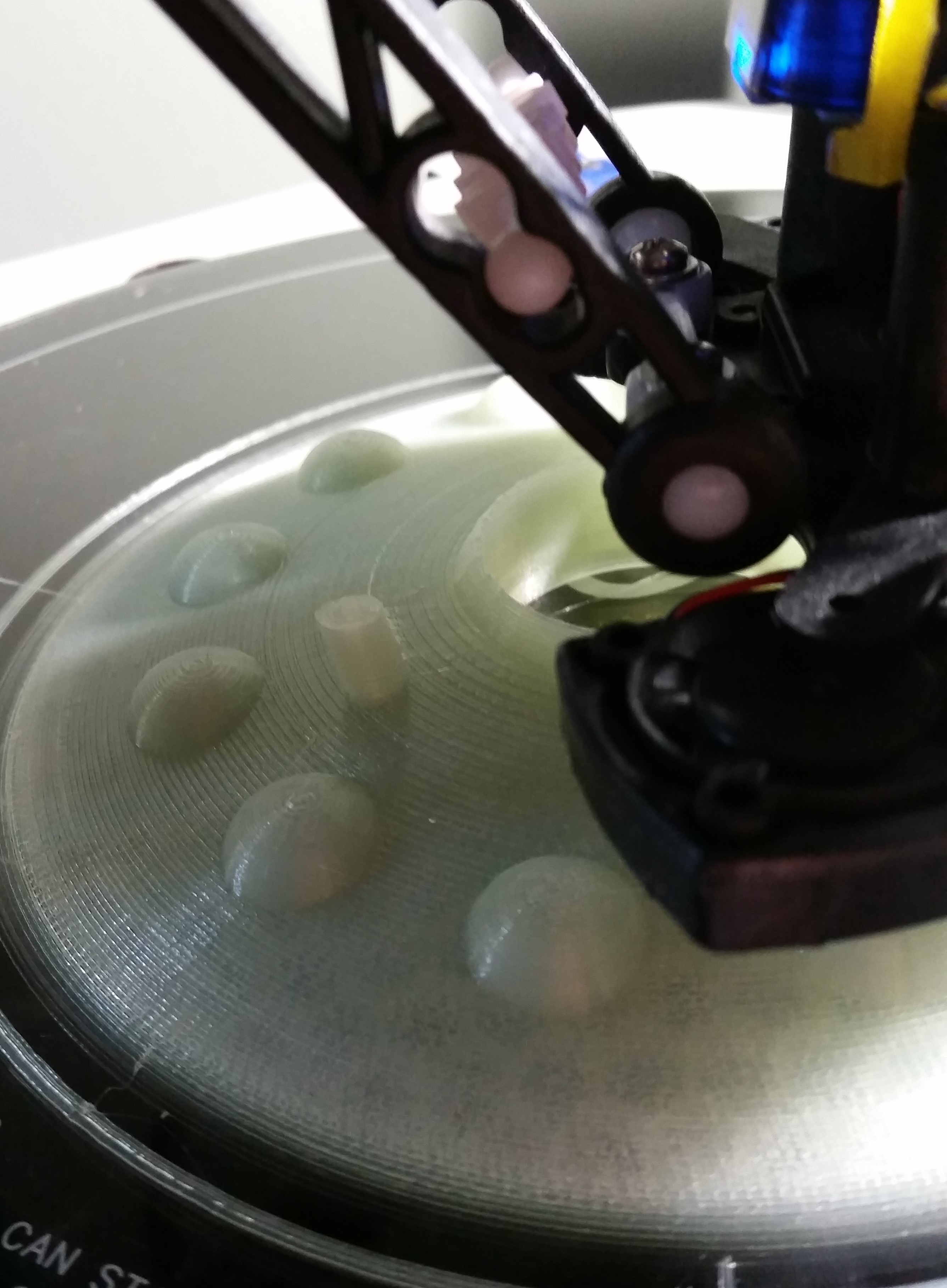 I'm trying to get the outer layers to print smoother with less pronounced lines. What are some of your successful print settings in Simplify3d? That's what I use and have posted this on their forums as well. As you can see, especially near the center of the print, the lines are quite pronounced and thick. Should I reduce the extrusion width more? I'll attach a pic of my settings if that helps.