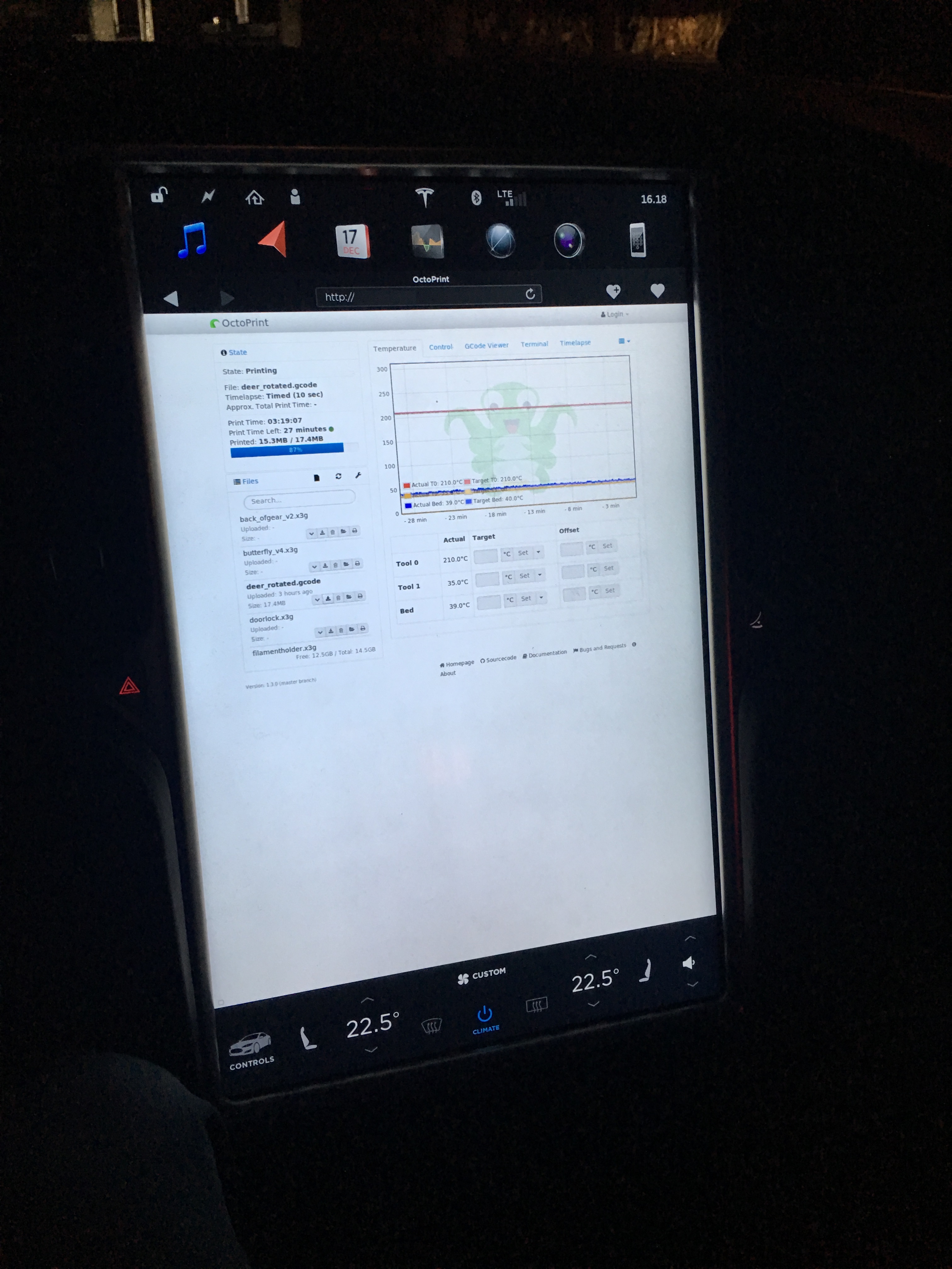 I just have to attach this geeky pic since I got the idea of getting a Octoprint setup from this thread. Took this picture in my car today when my gf was in the store