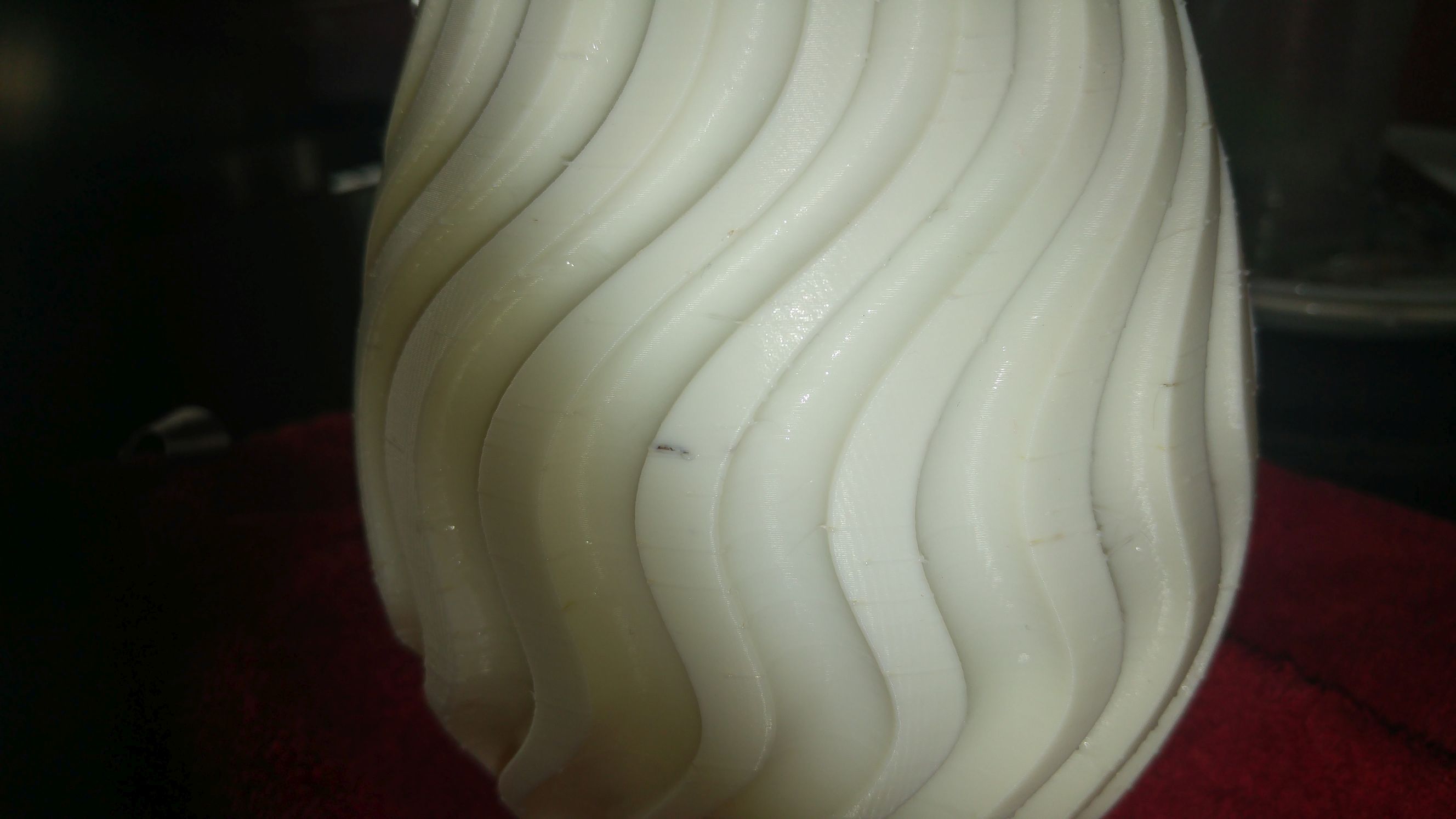 I took this vase to the test and filled it with water. It is pretty solid with 3 perimeters, but one spot was pooring out water. The black spot, I have no idea where the blackness came from, but I guess the nozzle pick up some goo, kept it a long time and dropped it off later making all three perimeters leak. Besides this, can good waterproof vases be expected at all?