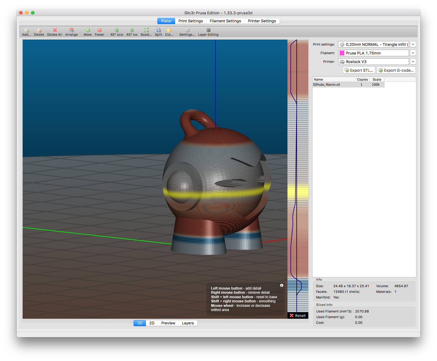 Prusa has been overhauling the venerable Slic3r slicer. The previous release back in Nov was awesome. Not only have they re-written code in C++ to improve performance and reliability, they added some great new features like the cubic 3 dimensional infill (which is excellent). A new version was released this weekend, see above. In addition to additional C++porting it adds variable layer heights (!) and much improved support generation.