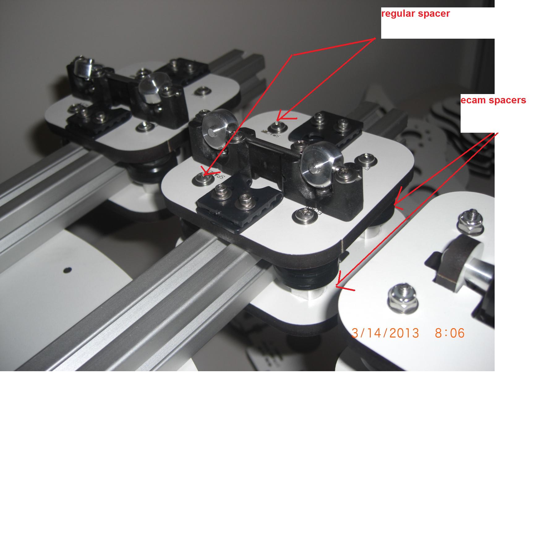 Its late, i might be sleep deprived and i'm bashing my head on wall to figure out why there is spacers and "eccentric cams". I wonder if it gonna work if i use 4 "eccentric cams" by carriage so i'll have the "spacers" needed for the axle support.