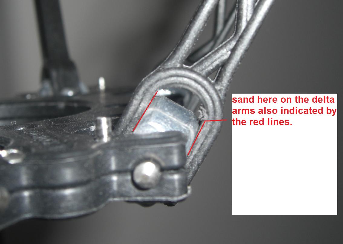 sand both sides of the ujoints injection molded plastic here another place for sanding on the delta arms the cheapskates