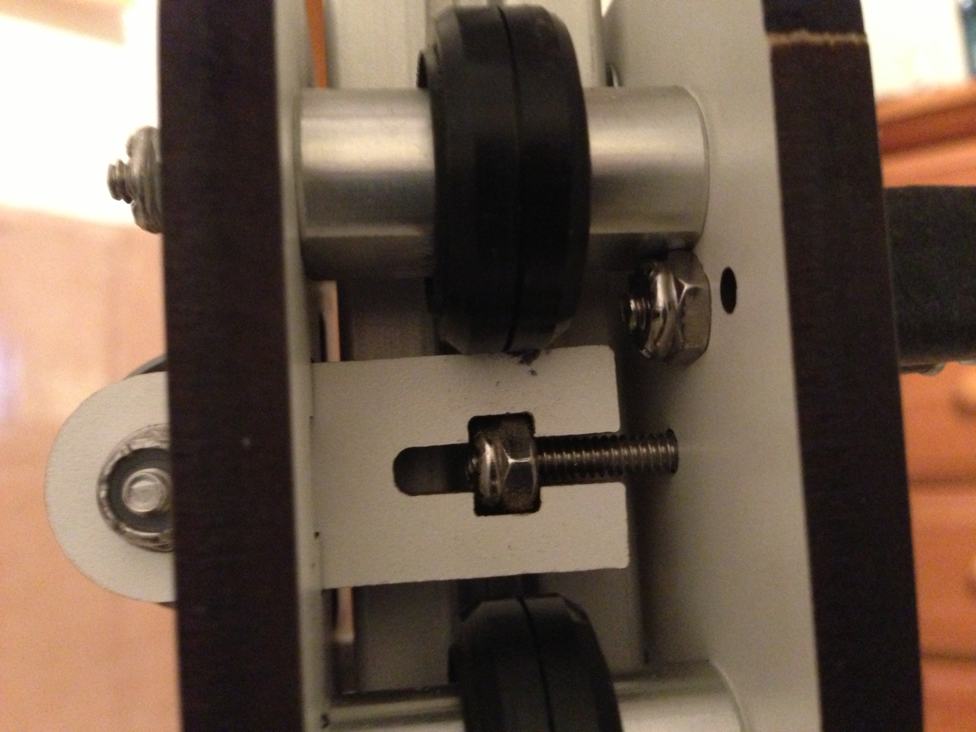 After fixing to fouling condition and getting the pressure just on against to rail to remove backlash and what not I noticed something else. At around midway up the rails the cheapskate felt like it was going over a bump. So I started trouble shooting again and found this.