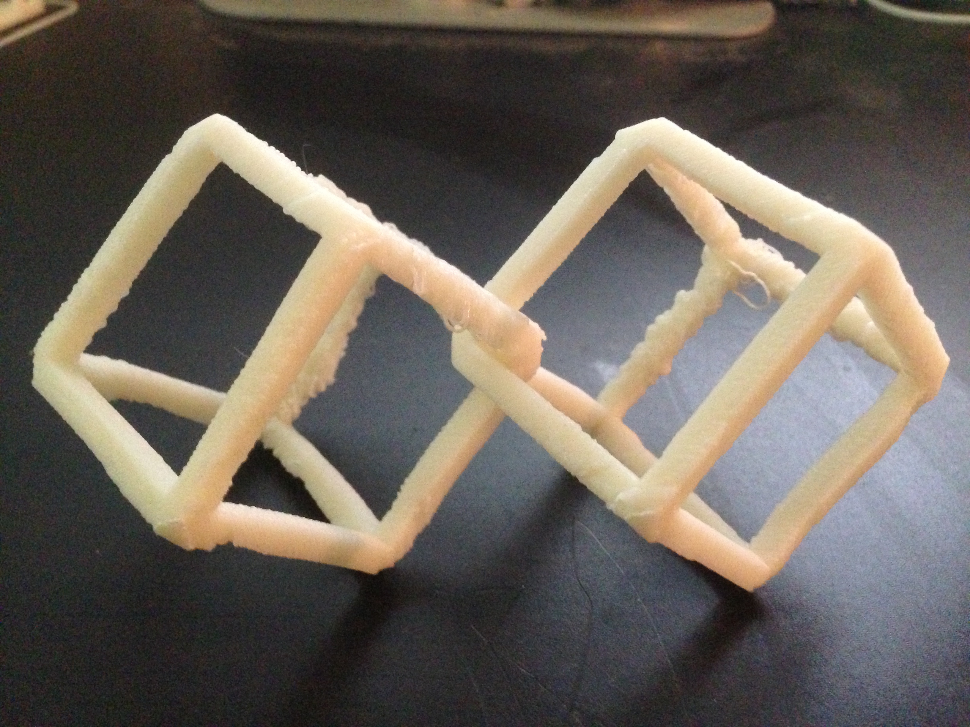 My attempt at Intersecting cubes with the Rostock Max. I know they didn't come out perfect but at least it finished out. I am anxiously awaiting XN's Magnetic arm set up. I am sure these arms will improve print quality significantly.