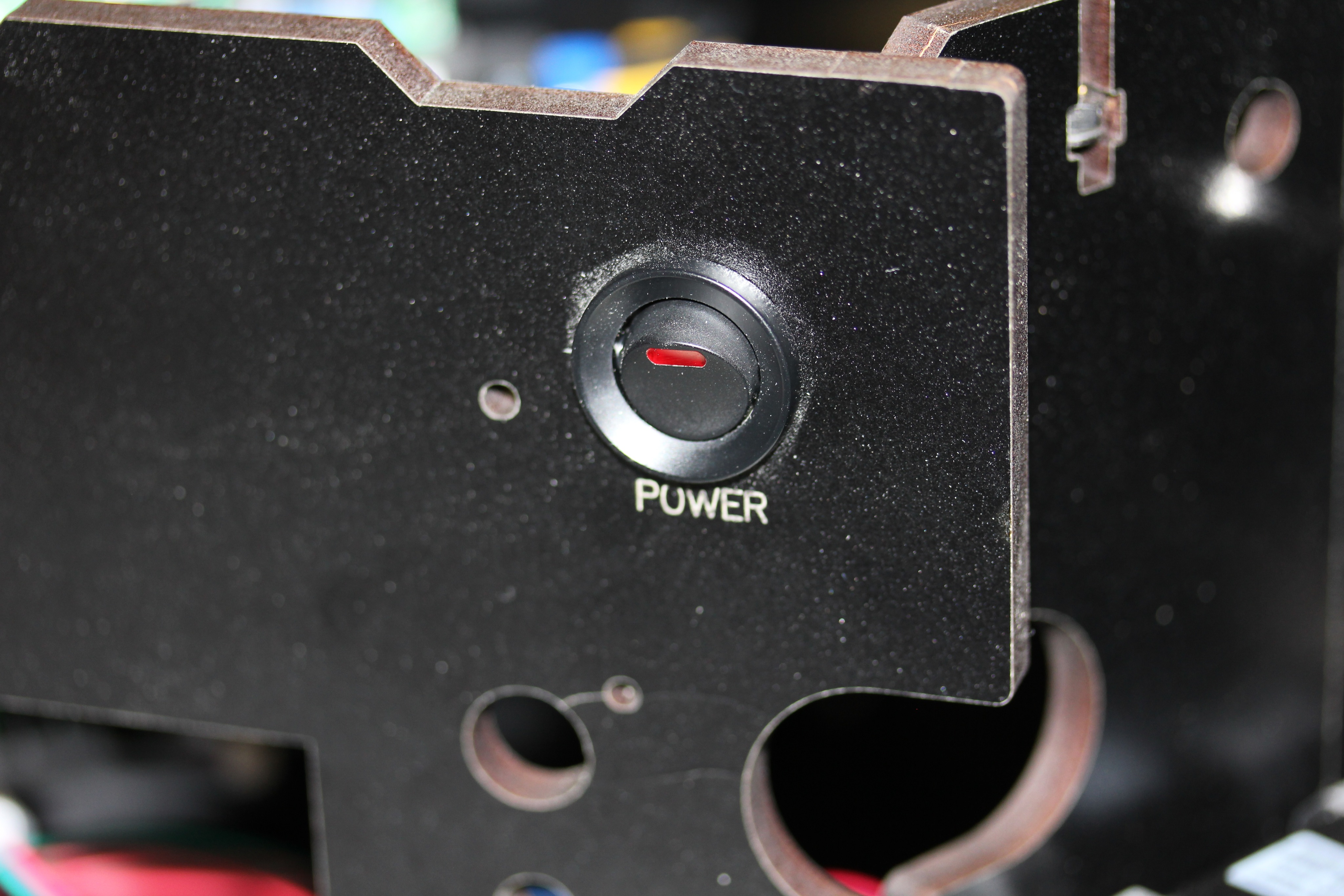 The power switch in the kit is really cheesy. I didn't care for it at all. So when I was at Oregon Electronics last week, I picked up a lighted SPST switch. It's round and black because the Rostock is round and black. It has an LED because the Rostock does not have enough LEDs.