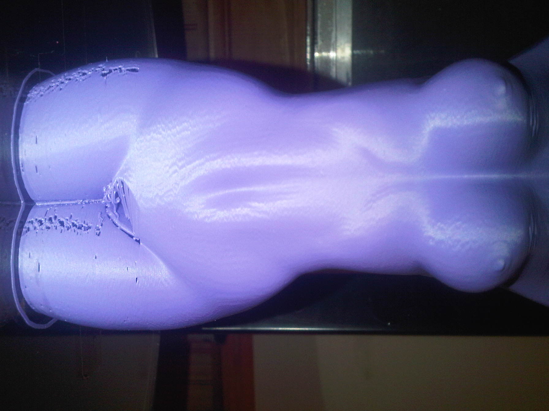 Well its been a year and a half since my 9yr old son and I built a H-1 and have been using it for lots of fun and work related things. ME (dad) decided to take the leap and get a Rockstock now while we had problems during the build all issues were taken care of by SEEMECNC immediately and with advise along the way we now have a awesome looking machine that is completely stock and up and running our first print was Saturday evening and half way thru the extruder jammed inside of the ezstruder unit, wasn't sure what happened so Sunday we tried again and low and behold did it again so went thru all pgs in manual and check for anything similar as well as forum but lucked out i can tell you that the motor got hot real hot 100c and nicely burnt the shape into fingers when i went to press the red lever to get filament out. spoke to John today at SEEMECNC and he had me check the coils of the motor and ta daa it is way outa whack. new one on way. robbed from H-1 and fired it back up3rd print looks awesome needs some tweaking used Slicer that came with machine don't know slicer setting just went with what Gene suggested in manual and print was again Awesome and gene I am buying several lottery tickets calibration set up was dead on on all 3 towers and perfect in center of bed (ya baby). print number 4 was done in kisslicer with mhackney's KISS settings no changes at all and let me tell you no let me show you the women bust printed single wall hollow and although some weird popping sounds from new reel of ABS coming out of nozzle which was evident from the mini holes hear and their in the body it turned out Freaking cool, super light due to hollow but i figure that if i change config to 2pass or wall thickness it will be dead on perfect the lines are tight and crisp cant ask for anything better than this just goes to show that an Original stock unit can produce sweet prints. this thing Rocks. only thing we added the triple ezstrudder top set up.