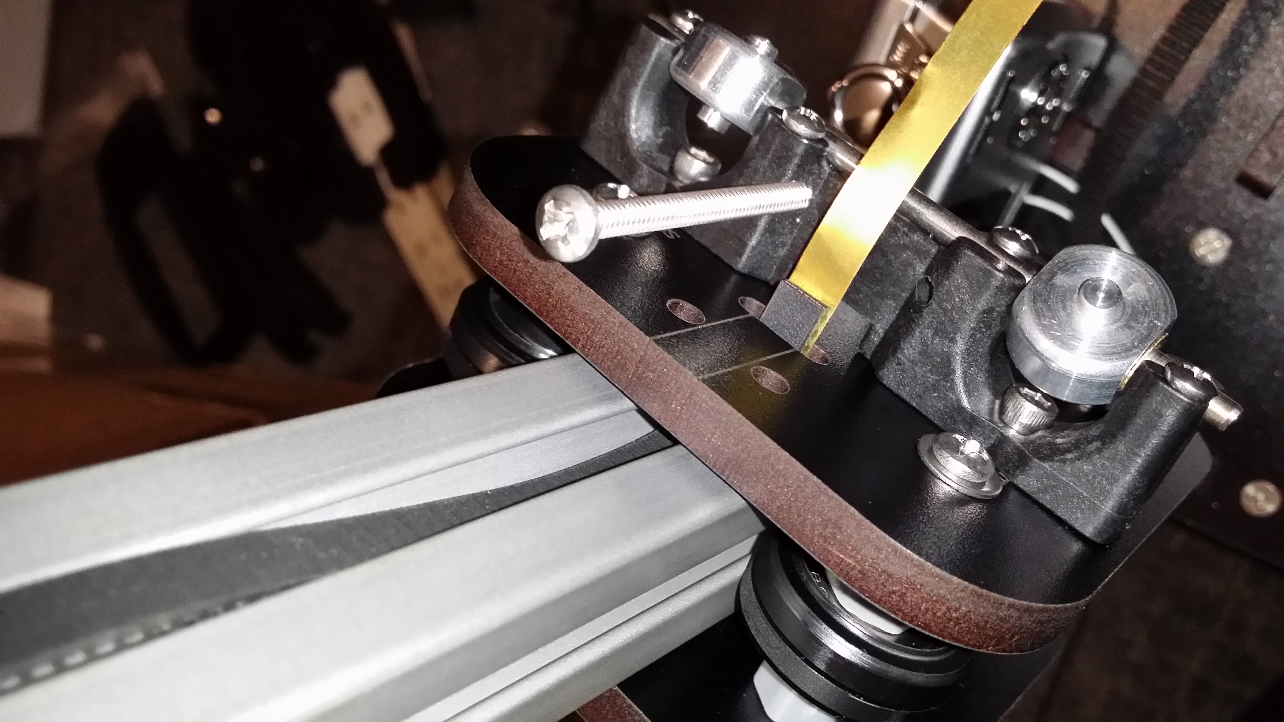 Strap those bad boys to the cheapskate mounts, grow a couple more arms and tighten that top bearing to get that belt tight! Seriously though, this could be a bit more one-person friendly.