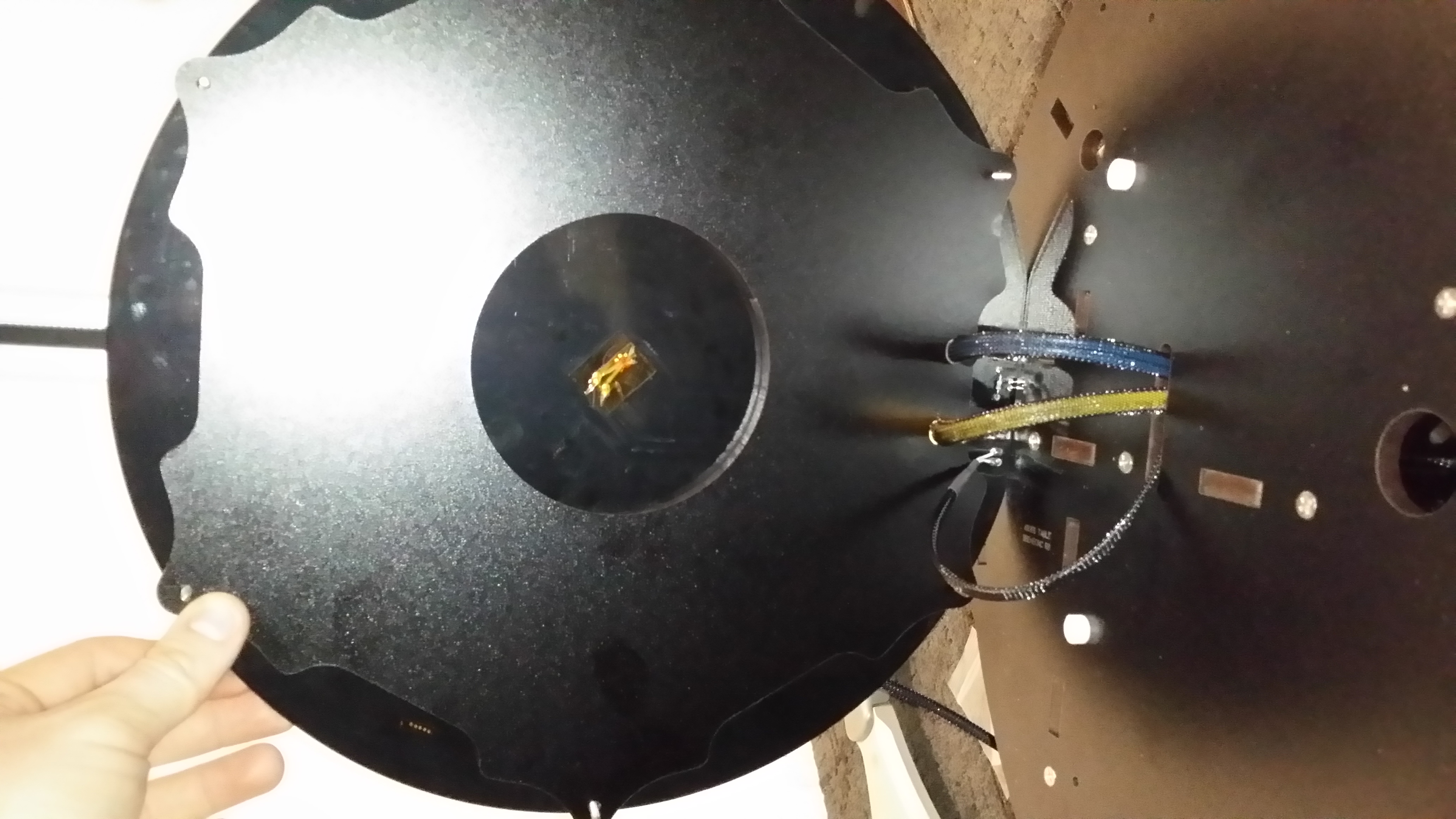 I went to put the bed in place but my wire loom made it a bit too fat!! Luckily that stuff slides pretty easily and I just slid it back down the hole and everything went fine. No pressure on the melamine or head bed. Attaching the wires to the heat bed was a bit of a pain though. I wanted to tin the pads before I attempted to put the wires on but failed to realize that the solder was wicking through the holes and making a great big bump on the top side of the heat bed. I ended up having to file this down later to get it smooth again. I should have put some kapton tape there temporarily so that didn't happen. Oh well.