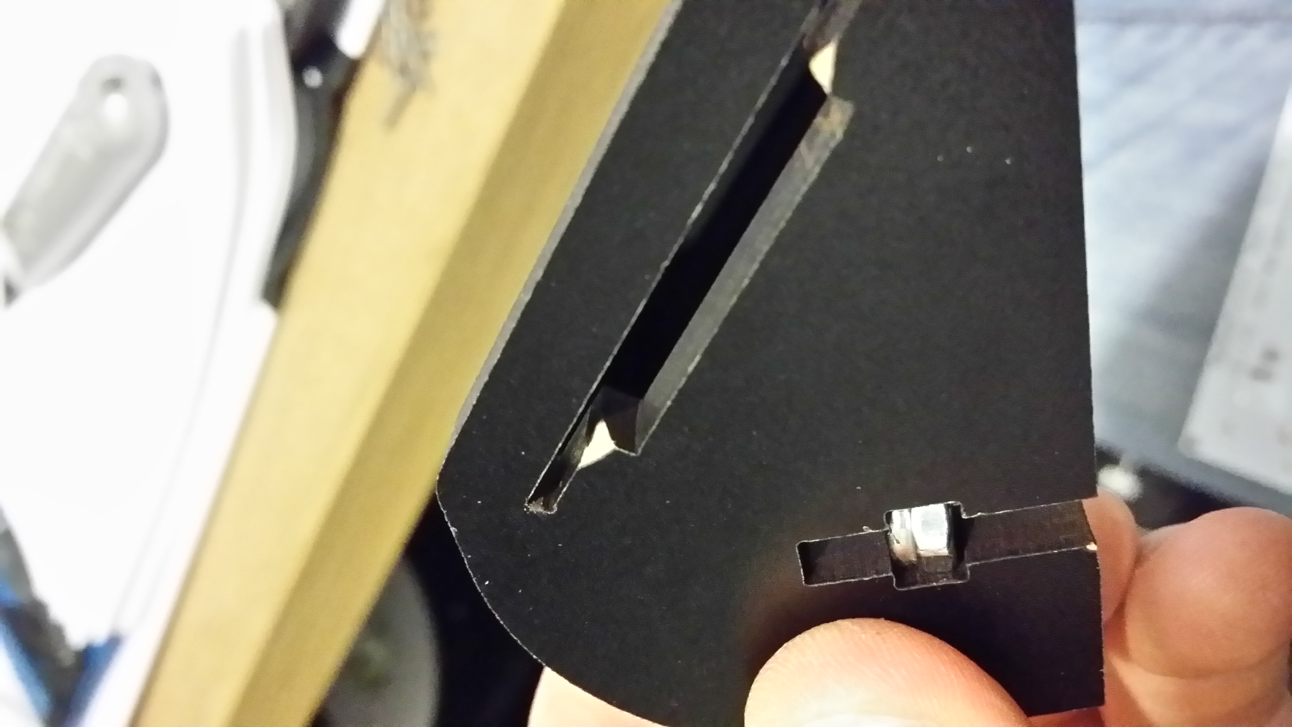 I tossed the extruder assembly together and had to shave off a bit of one of the spacers in order to get it to sit flush in the mount. Super simple stuff. Throw some black sharpy on that shaved melamine and it looks burnt as ever.
