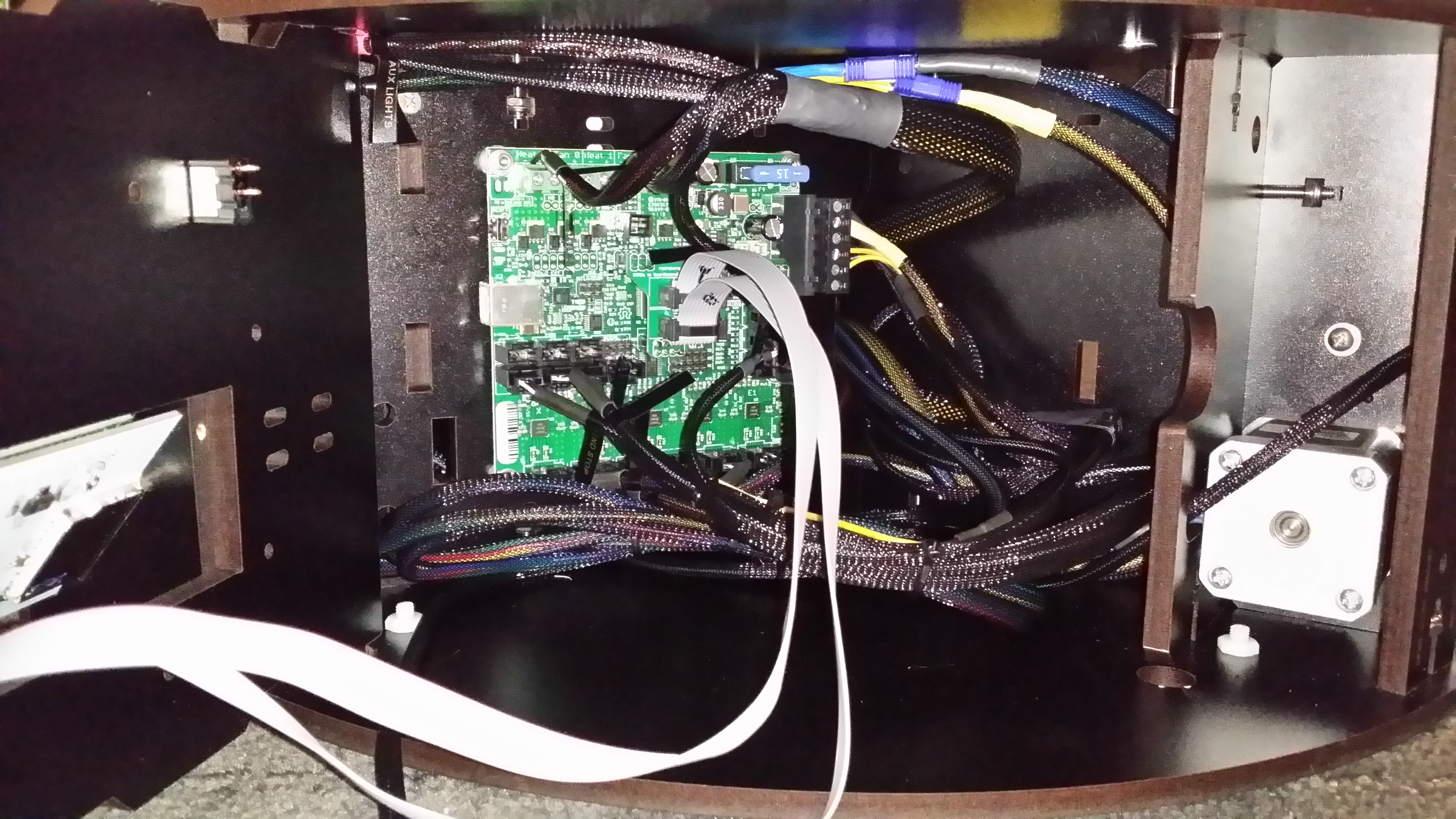 It was now time for some last touches. I tied all the wiring back, the spool holder was installed (a while ago) and black PLA put onto the machine. Not in it yet as I hadn't calibrated.