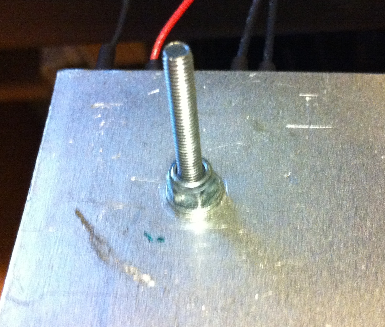 - Now tape your thermistor to the center of the HPB and feed the leads out along the copper wire
