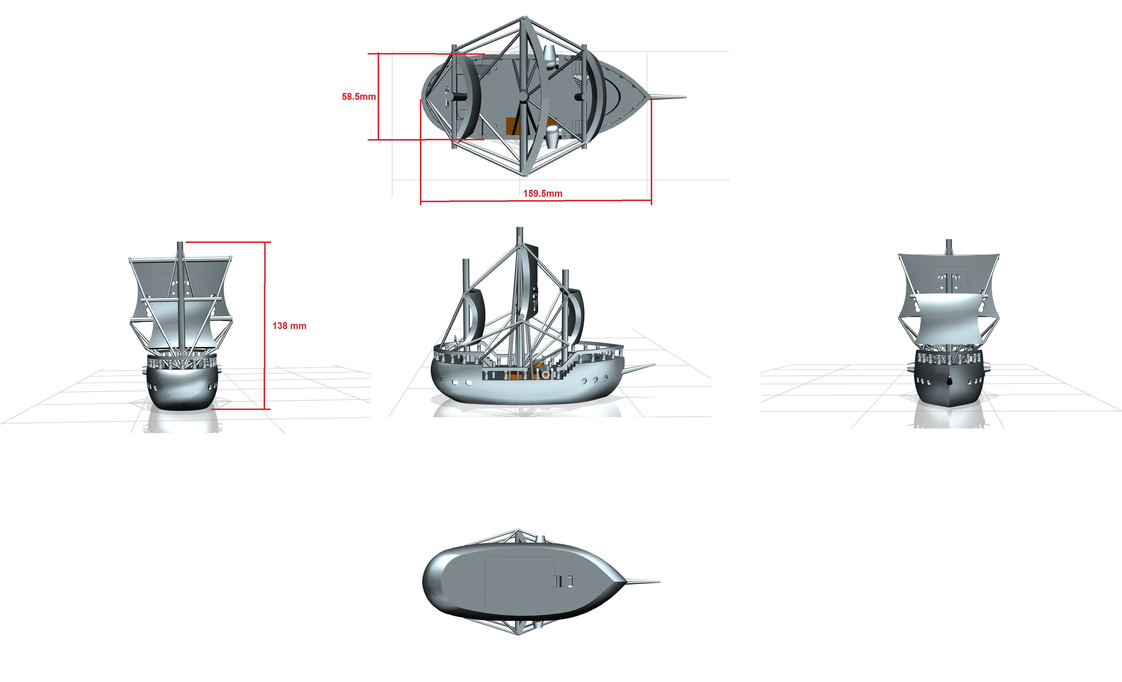 - Scale. If the dimensions you've got there are accurate, you're going to have some issues with the smaller parts of the model such as the helm - these will be tiny and probably wont reproduce very well unless you've got your machine dialed in nicely.