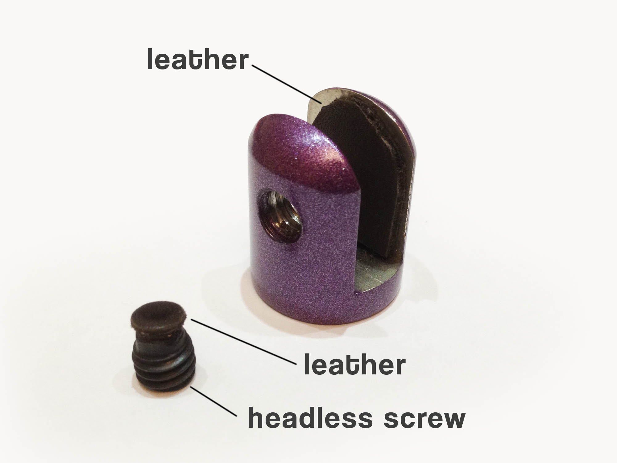 I've used 2 pieces of leather to avoid the screw doing too much pressure to the boro glass.
