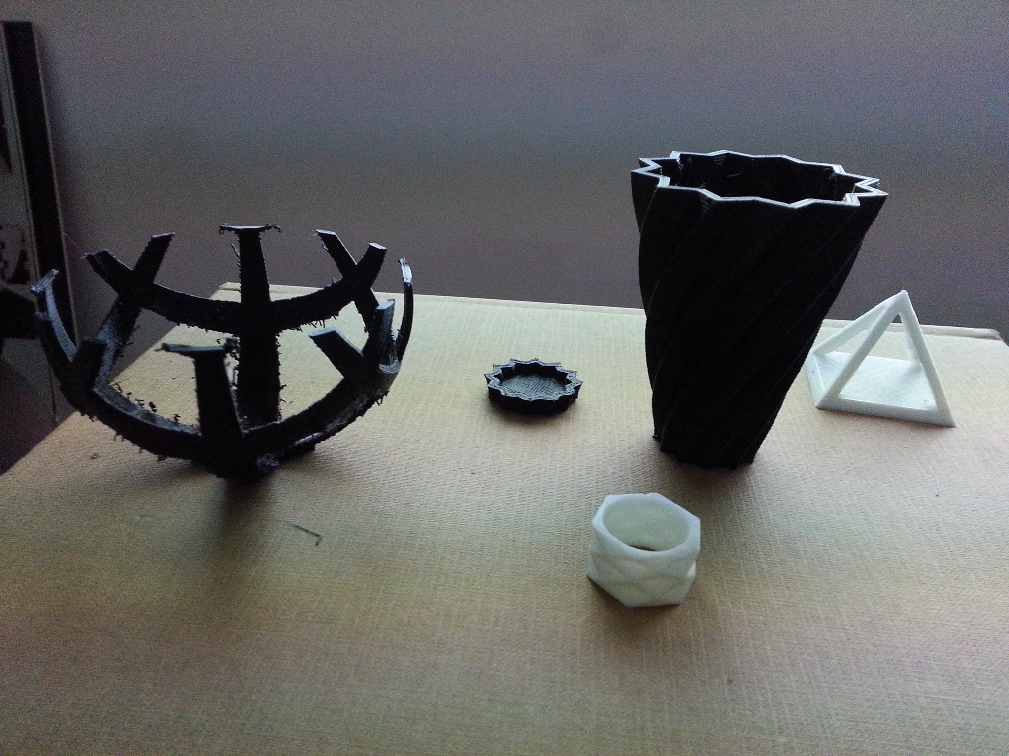 Ive still got a fair bit of calibration to do... I didn't adjust my "esteps" yet, so ive got some problems filling to my parimeters and cooling my prints enough that when layers get dumped on top they dont bend up and the nozzle sometimes bumps things and makes the hairspray let go.