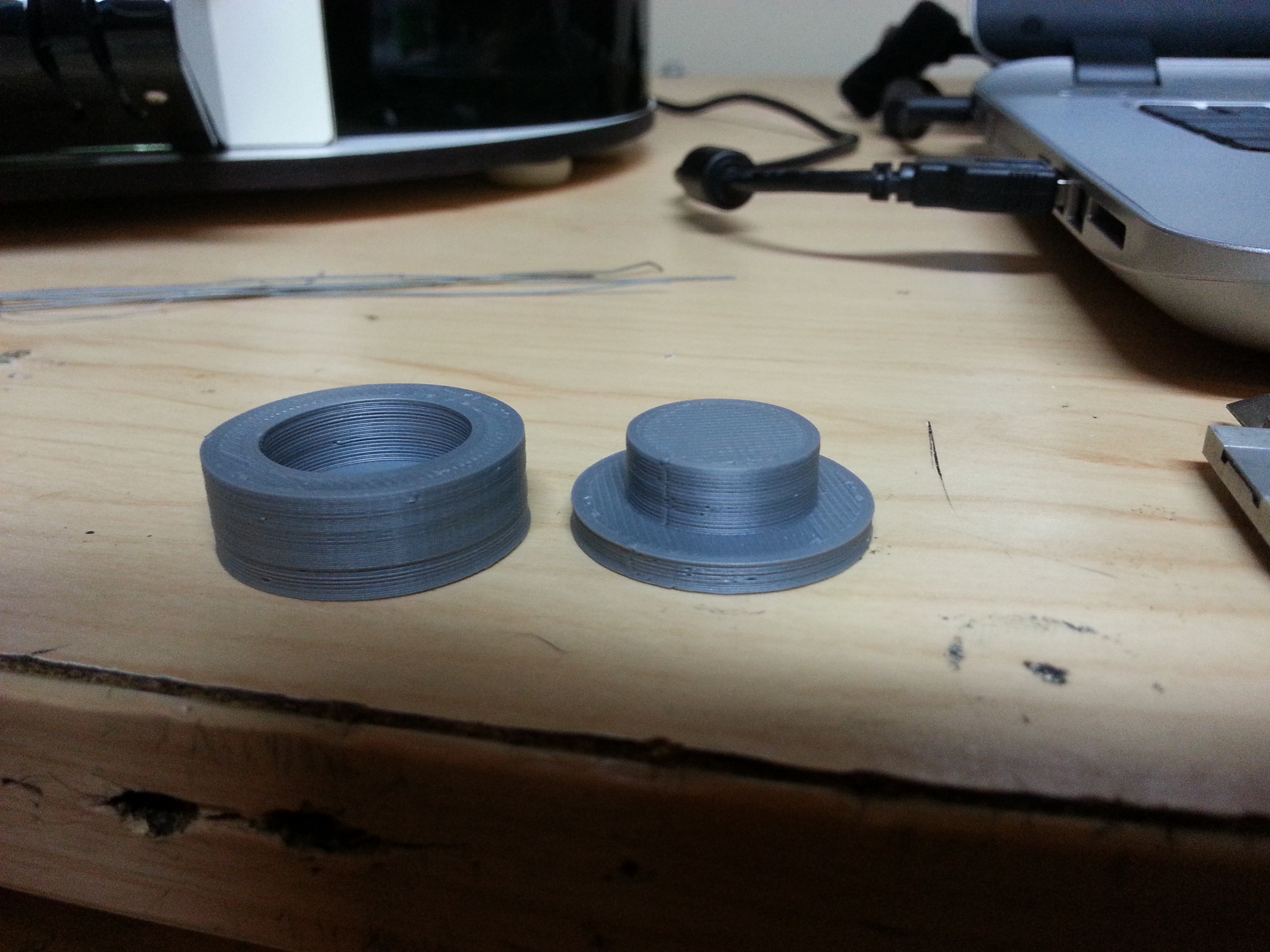 Here are a few of the things that are first off my new Rostock2 (now called the Starfleet Replicator). The first print was a small calibration cube. The second was a 30mm plug test and the latest print was my attempt at the short version of the Tower of Pi. Used ABS on all.