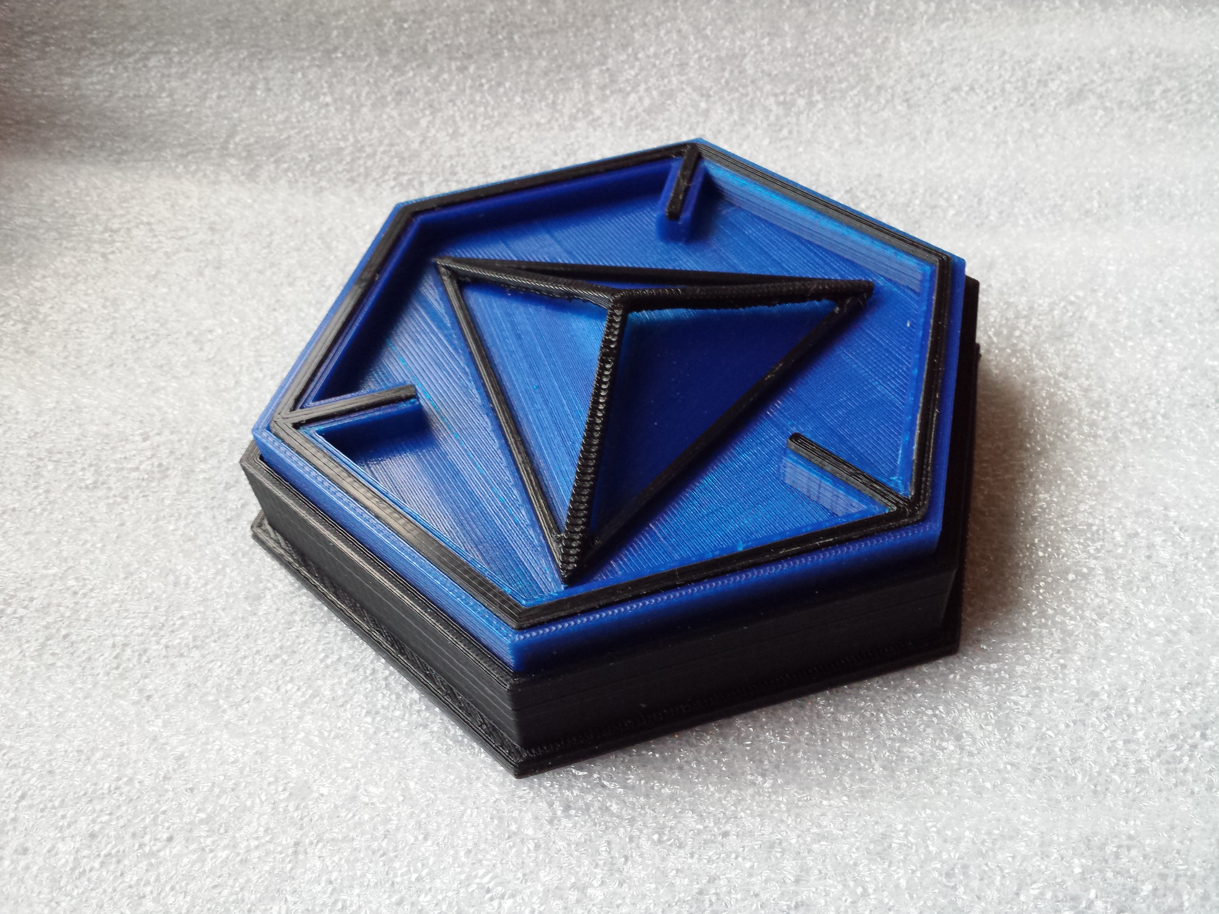 This is my first project, a logo for a game called Ingress, printed in 4 pieces on a Rostock Max using Matter Control software and PLA. It will be backlit with a 10cm x 10cm electroluminescent panel. I tested the lighting effect with my bench lamp.
