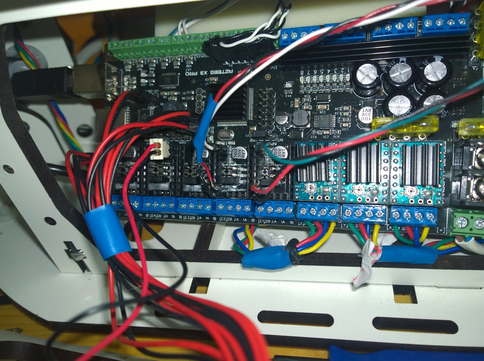 but I need to add some wires anyway, for delivery power to steppers (wires already there are too thin I think), and heaters, so I need to find a way to lead them to the top plates hidden.