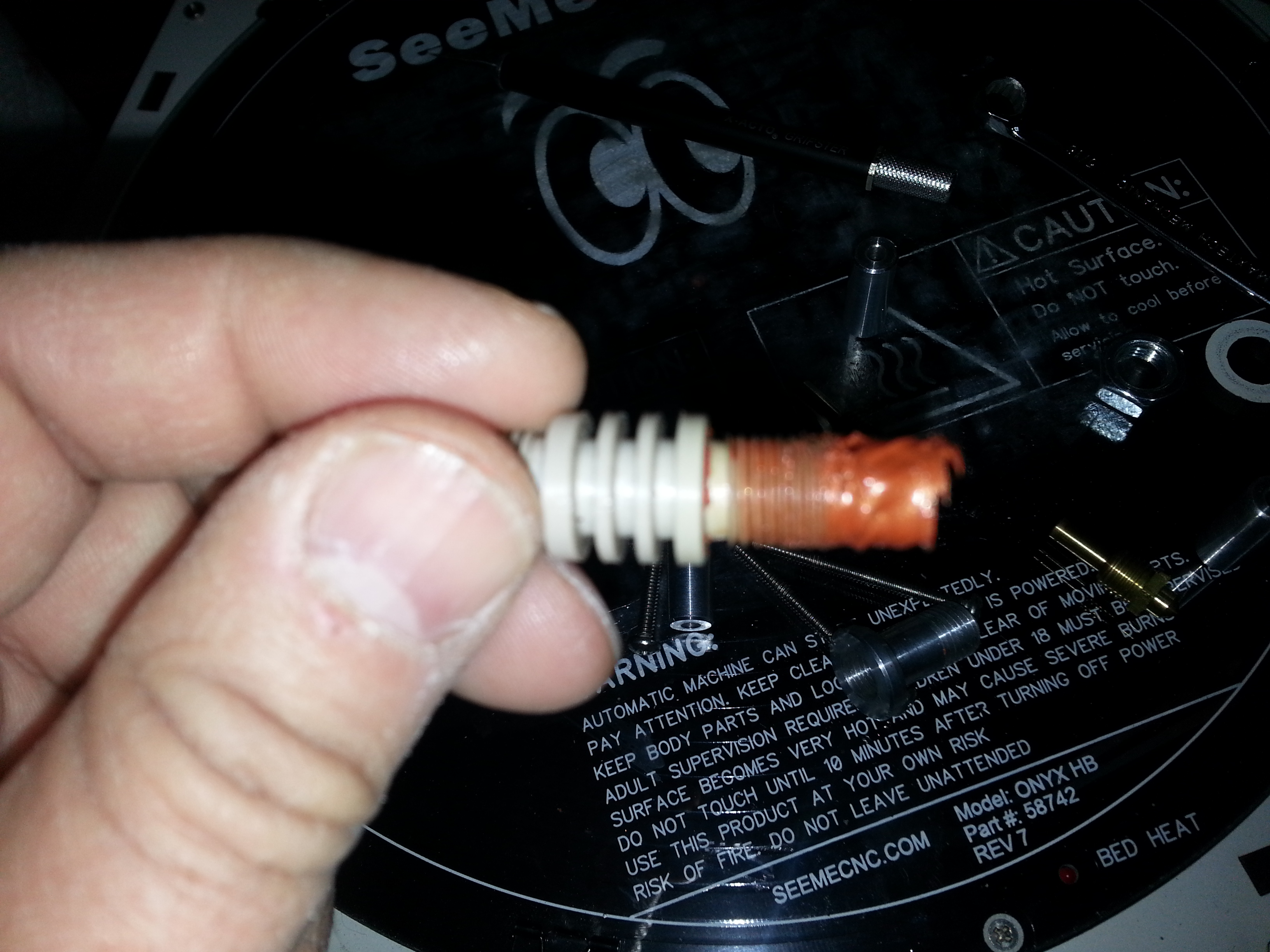 I used the ultra copper to create a solid piece of high temp silicone in the airspace between the heat resistor and the nozzle. I formed it so it would contact the inner thread surface of the hotend barrel when i screwed it in. I used the ptfe tube as a gauge to ensure the nozzle was far enough away from the plastic heat resistor. I just screwed everything together and used a sharpie to mark how far out the tube was sticking. I let i dry overnight.