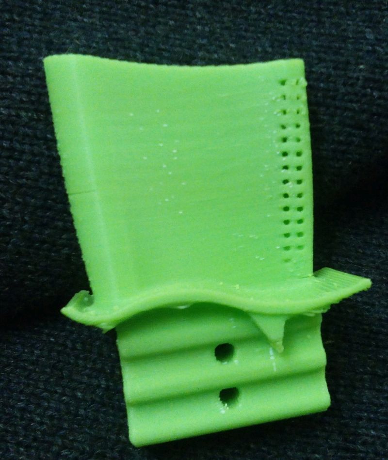 Yes..this time i printed this turbine blade at 0.2mm layer resolution with PLA..just want to check how the cooling holes(1.2mm diameter) turns out to be..the picture of half done..