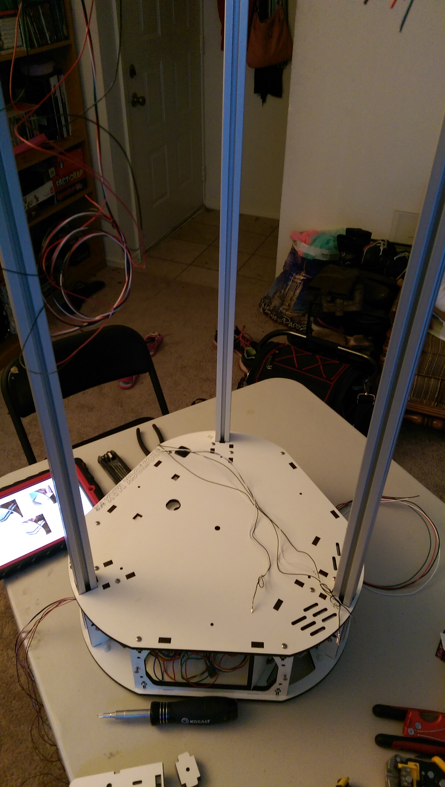 This is my first machines, and therefore my first build thread. I received my Rostock kit last weekend, and began the assembly promptly. I took pictures along the way, but did not stop to start this thread, I was too excited. So here are the pictures from it, since I have now completed the assembly and am having trouble with the printing (which I will show at the end).