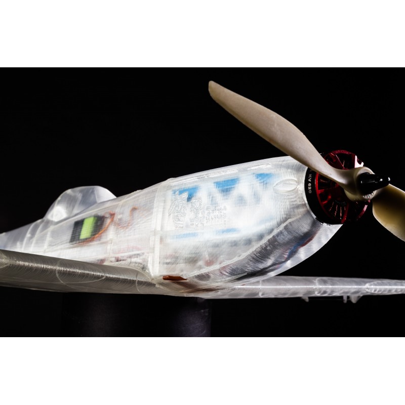 The majority is printed one perimeter thick with a 0.42mm layer width making it very thin. The wings are internally braced and trussed making them stiffer than any other plane I have ever assembled be it foam, stick built, etc. The fuselage is also a single perimeter thick and is pretty good but a little squishy. No doubt it is strong enough to fly but not real firm to handle. The fuselage would benefit from a frame former on each section splice.