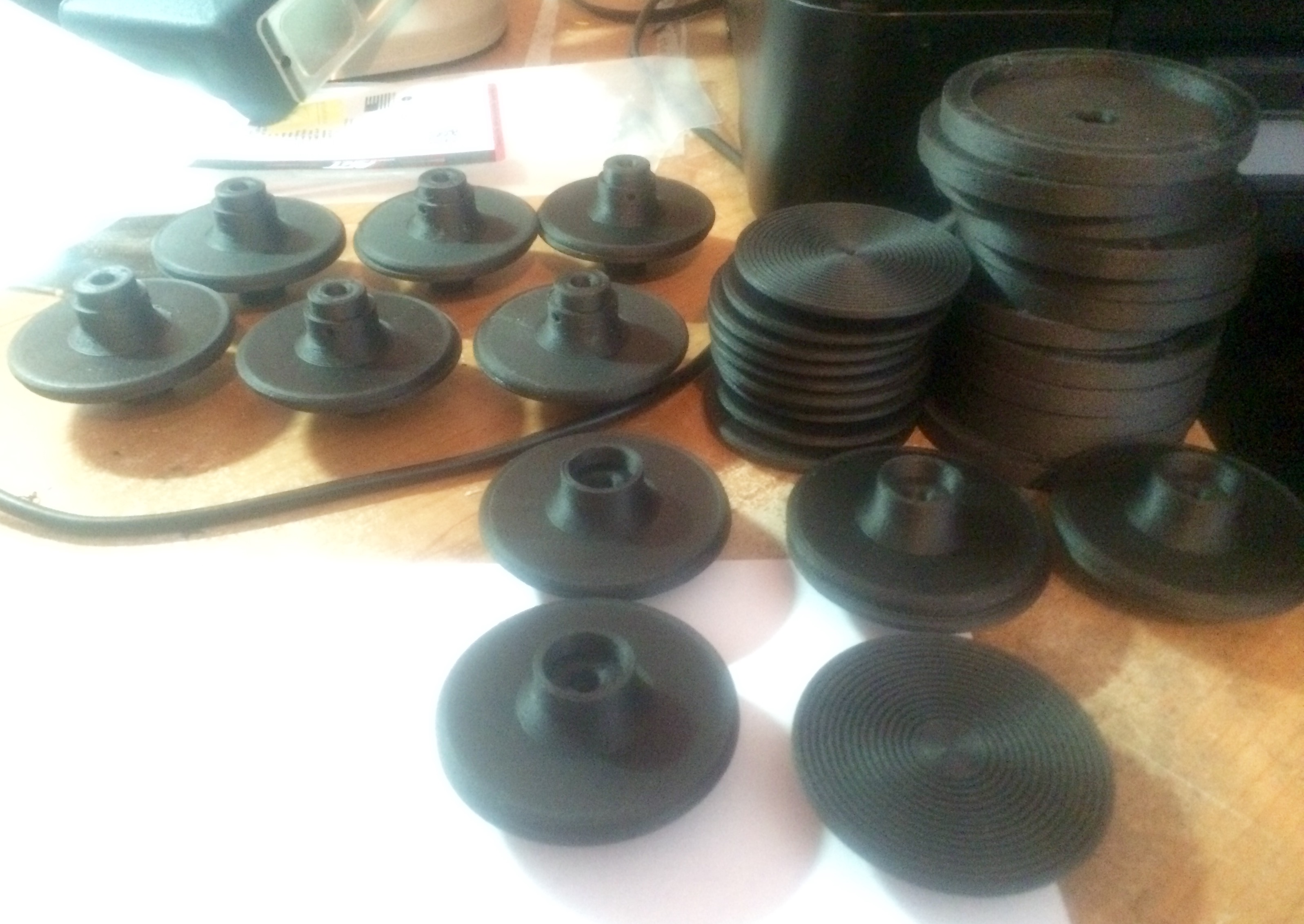 Here are a bunch of parts (12 of each of the 4) all done in Proto Pasta CF PLA ready to assemble into reels.